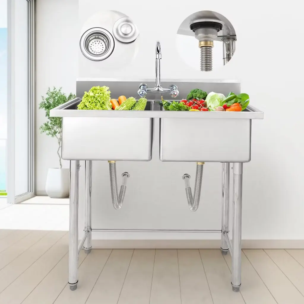 Stainless Steel Utility Sink with Adjustable Legs and Spacious Compartment, Free-Standing Design, Versatile Use, and Easy-Clean & Anti-Splash Features