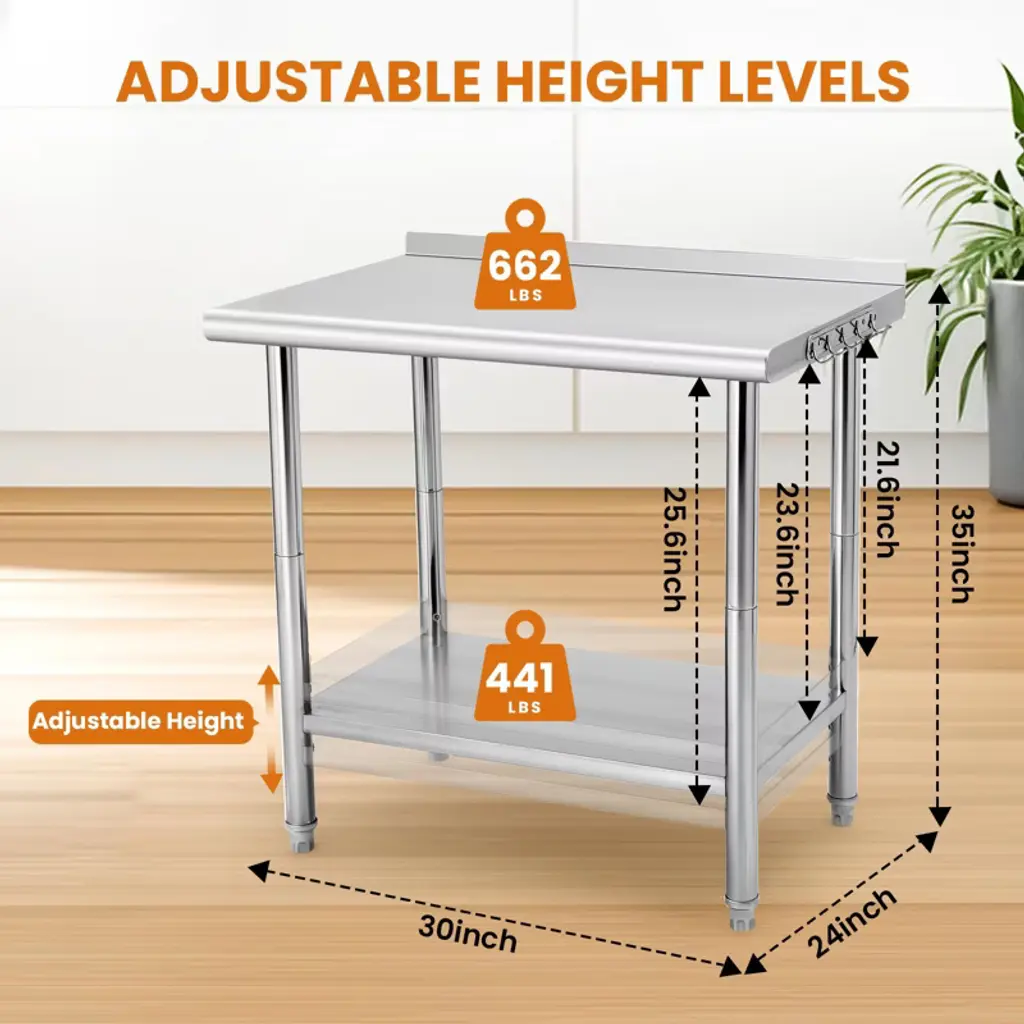 Stainless Steel Work Table,30" X 24" Metal Prep Table,nsf Heavy Duty Commercial With Adjustable Undershelf