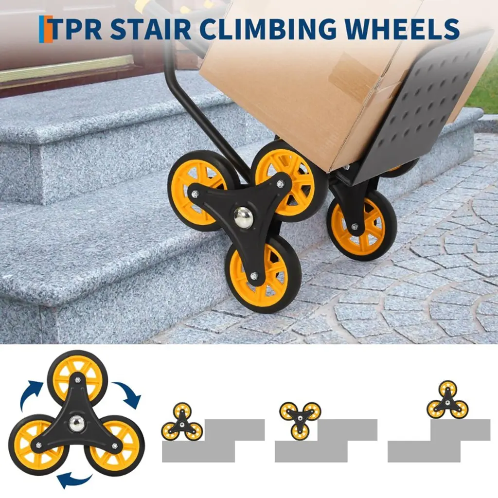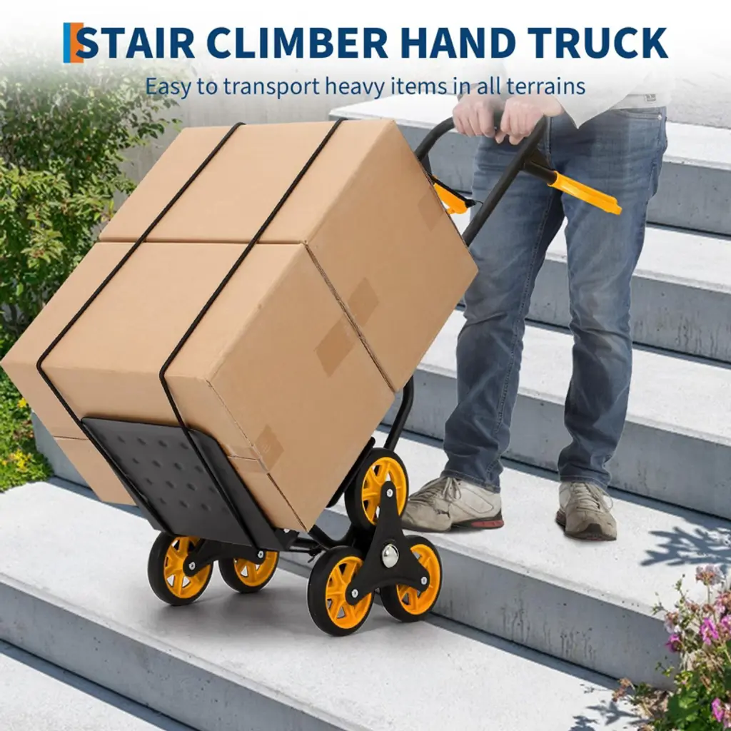 Stair Climbing Cart - 330lb Heavy Duty Hand Truck with 6 Wheels, Telescoping Handle & 2 Elastic Ropes for Moving On Stairs - Home, Office, Warehouse, Shopping Use