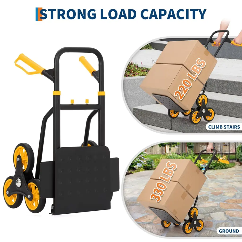 Stair Climbing Cart, 330 Lb Weight Capacity, Folding Heavy Duty Stair Climbing Dolly With Adjustable Handle & 2 Elastic Ropes