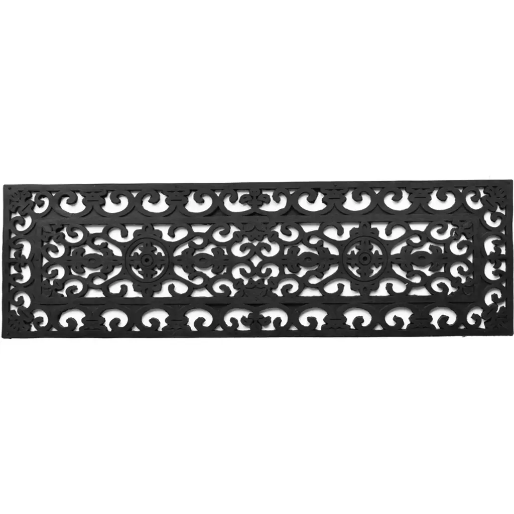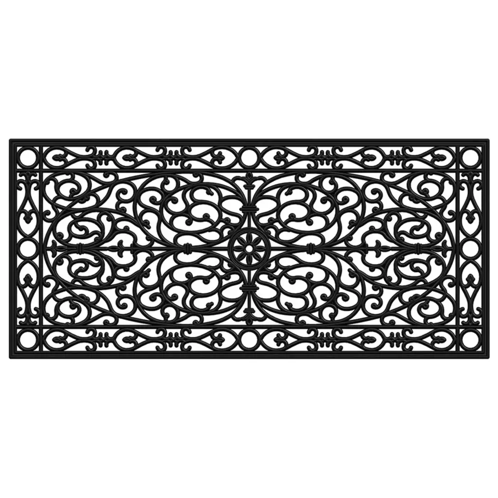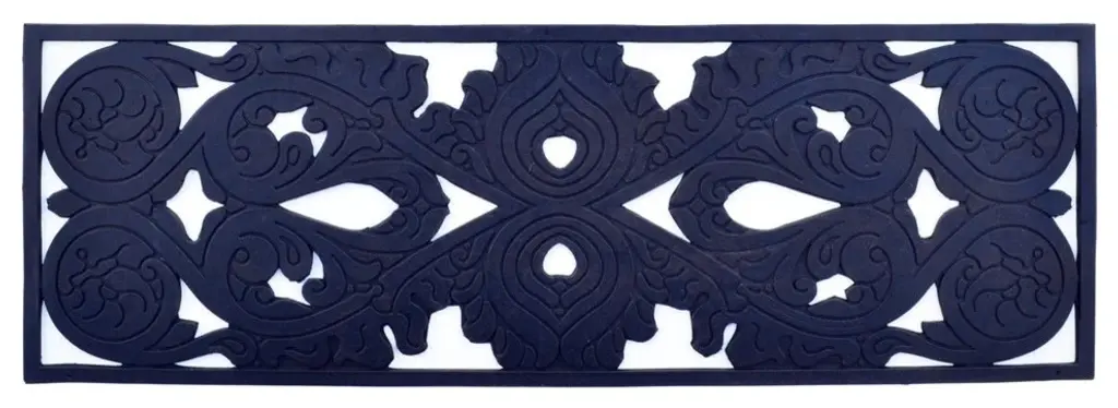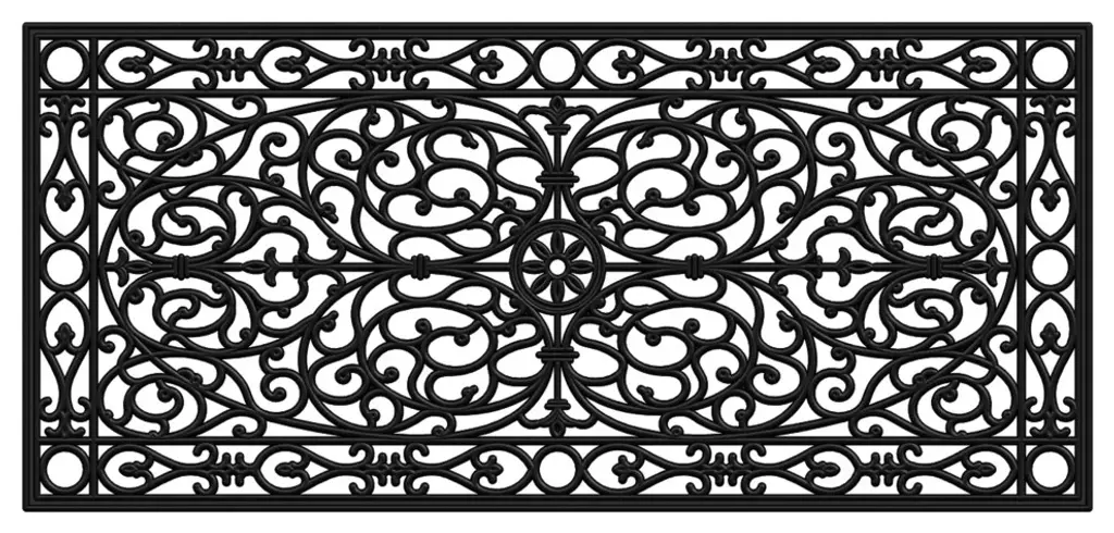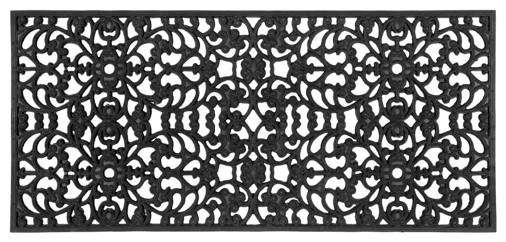 Wrought iron rubber mats mixes vulcanized natural rubber and recycled rubber to form an elegant mat that is resistant to dust, skidding, and is durable. These mats are optimal for areas exposed to moisture such as pool sides. These mats are about 1/2" thick.