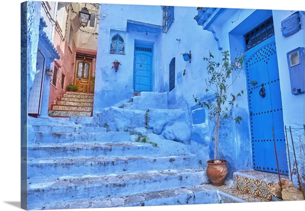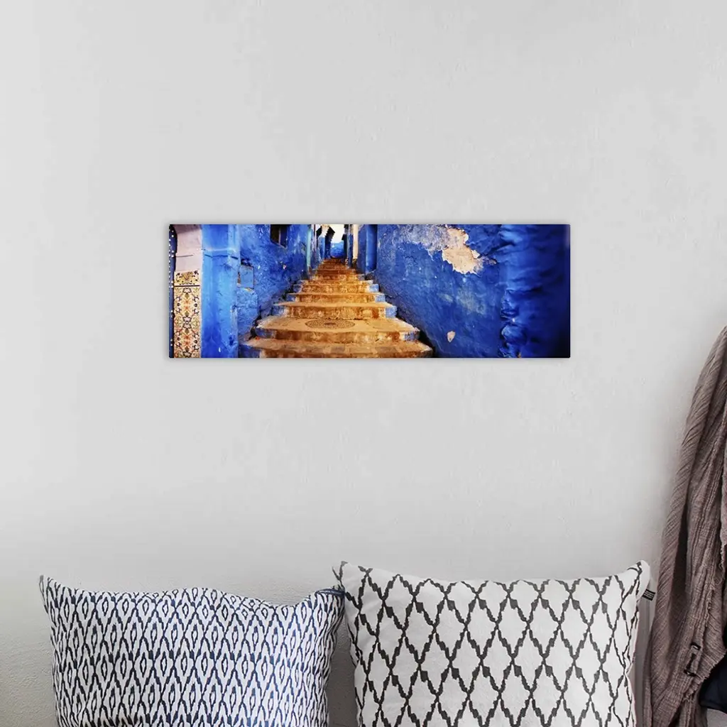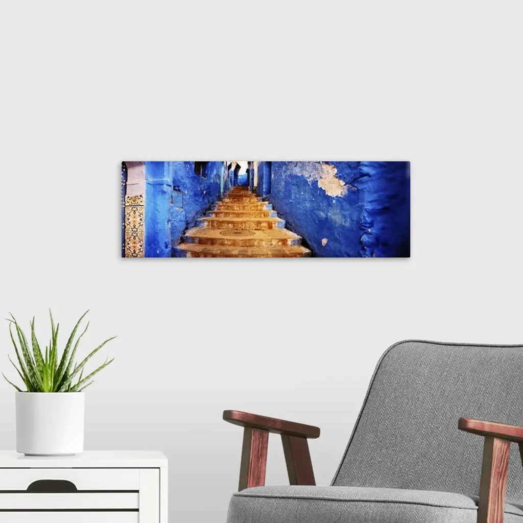 Staircases of the medina are all painted blue, Chefchaouen, Morocco wall art for home and office decor. Discover canvas art prints, photos, mural, big canvas art and framed wall art in GreatBigCanvas.com's varied collections.