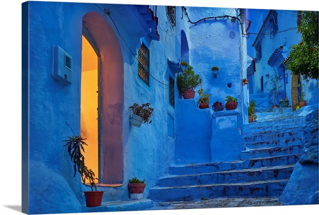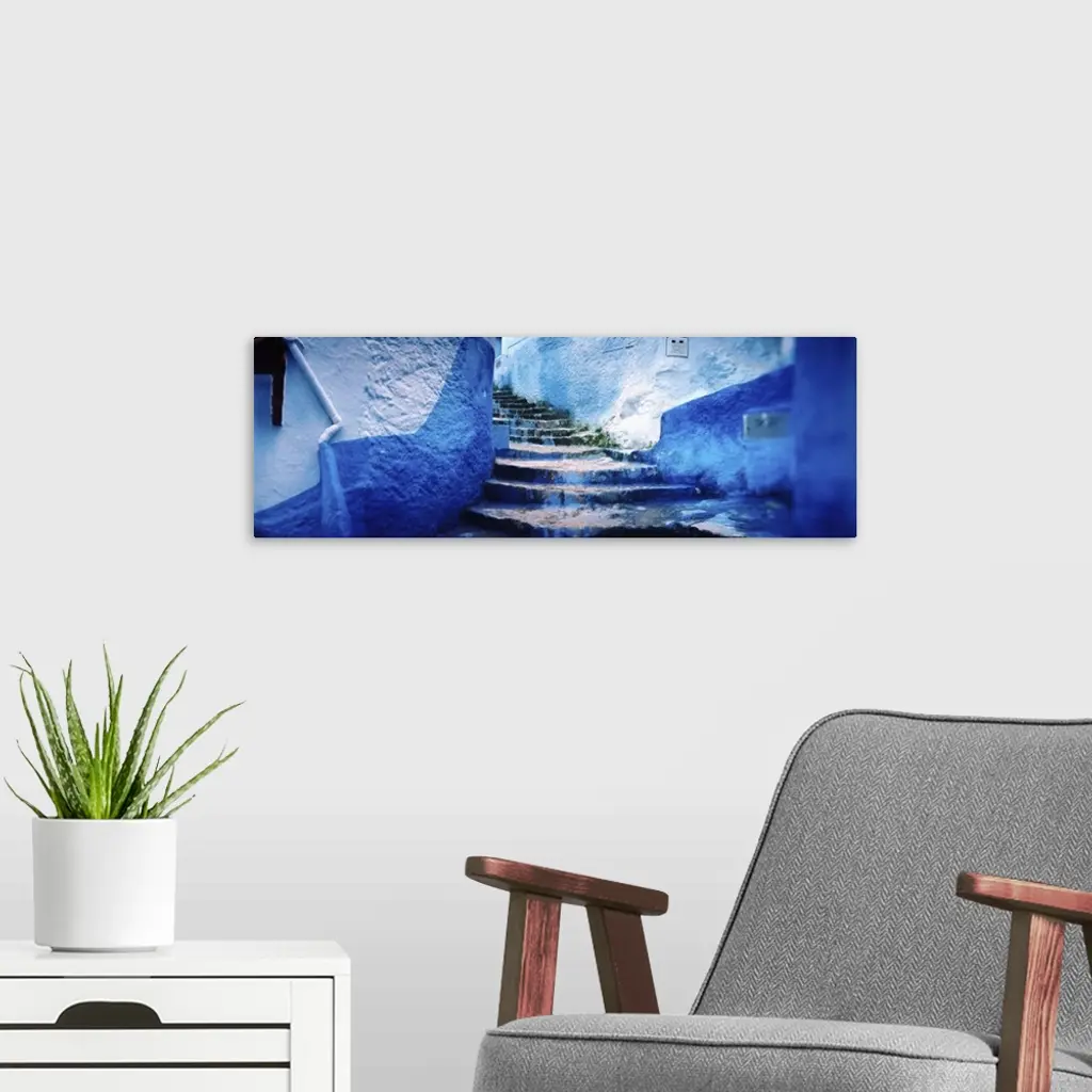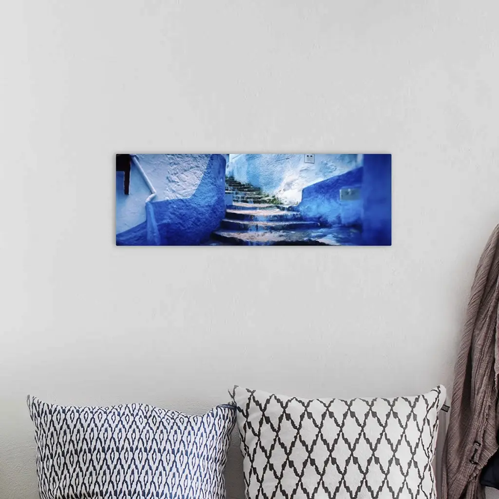Staircases of the medina are all painted blue, Chefchaouen, Morocco wall art for home and office decor. Discover canvas art prints, photos, mural, big canvas art and framed wall art in GreatBigCanvas.com's varied collections.