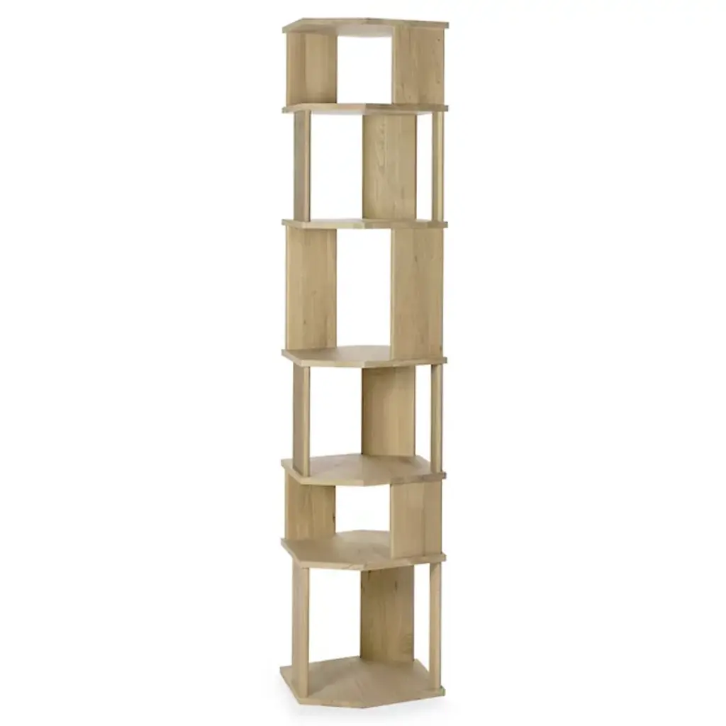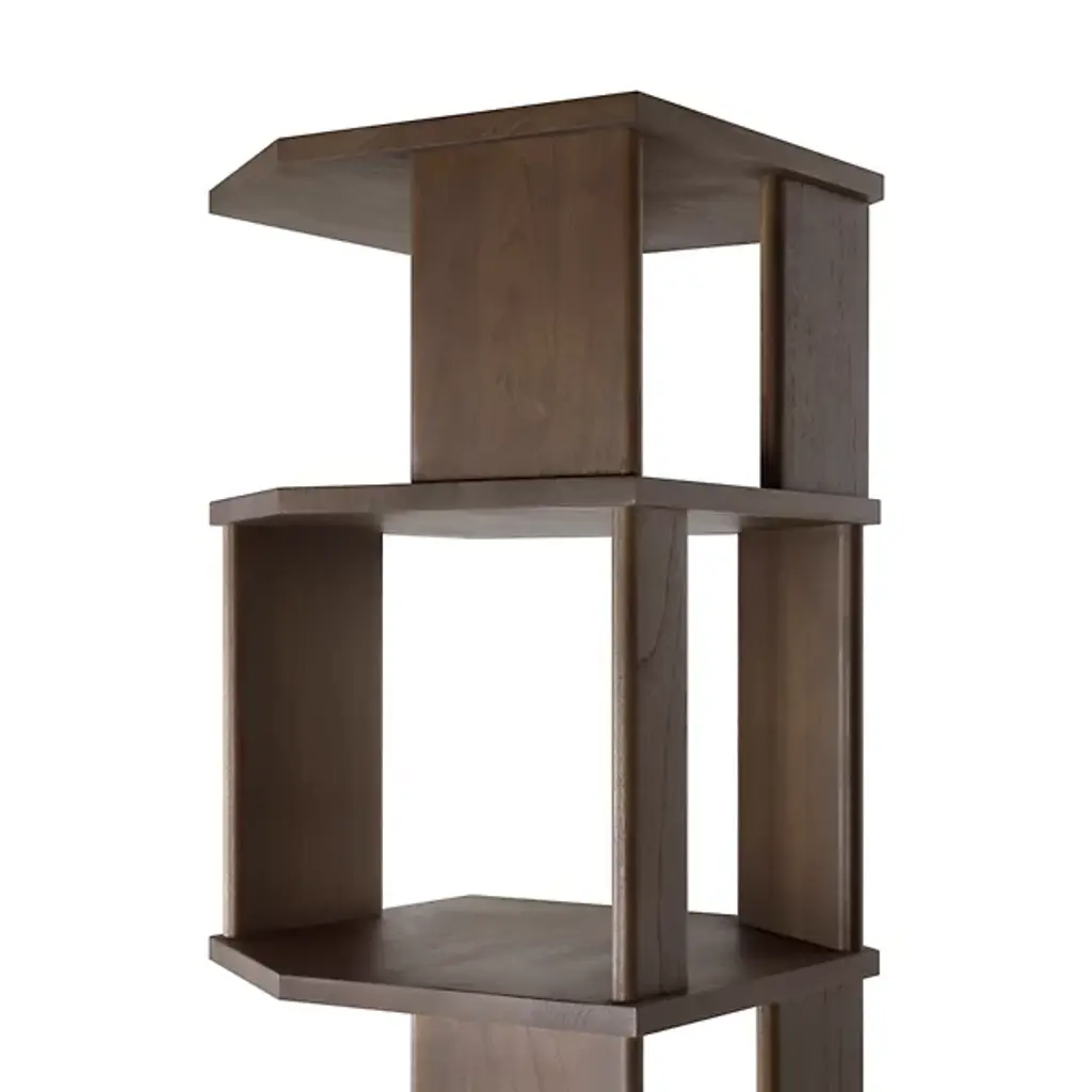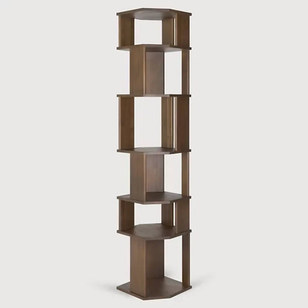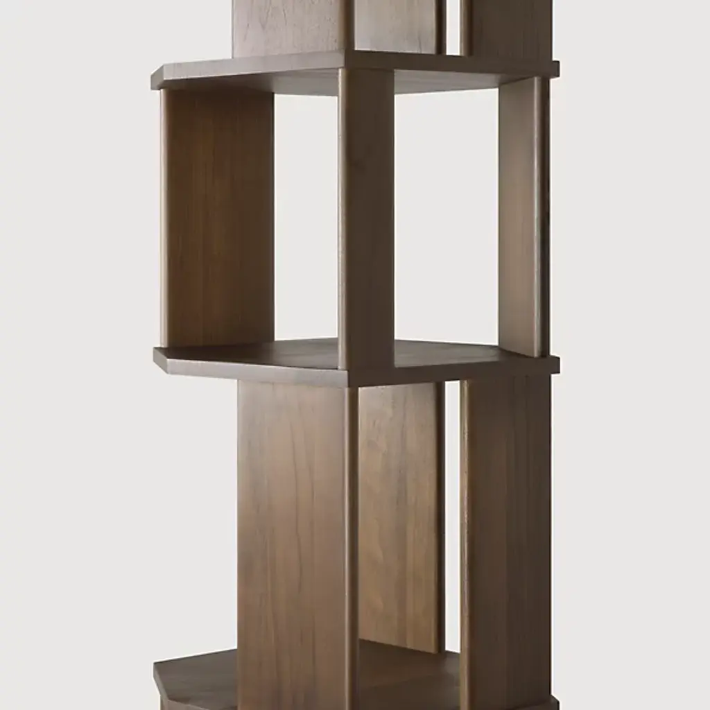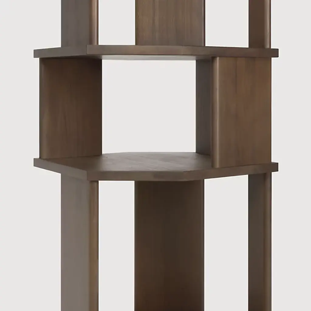 Designed as a protest to static objects. The Stairs Column from Ethnicraft moves your eyes from level to level in a sculptural series. The piece stores your objects and celebrates them by providing an attractive view from any angle. Each level of rectangular columns creates an eye-catching silhouette of stairs. The angle-cut shelves heighten the dynamic illusion. Made from oak wood, the piece delights in its naturally radiant color. Woodgrain lines flow from top to bottom, inviting a more in-depth look. A hard wax oil finish keeps the wood surfaces colorful and protected.