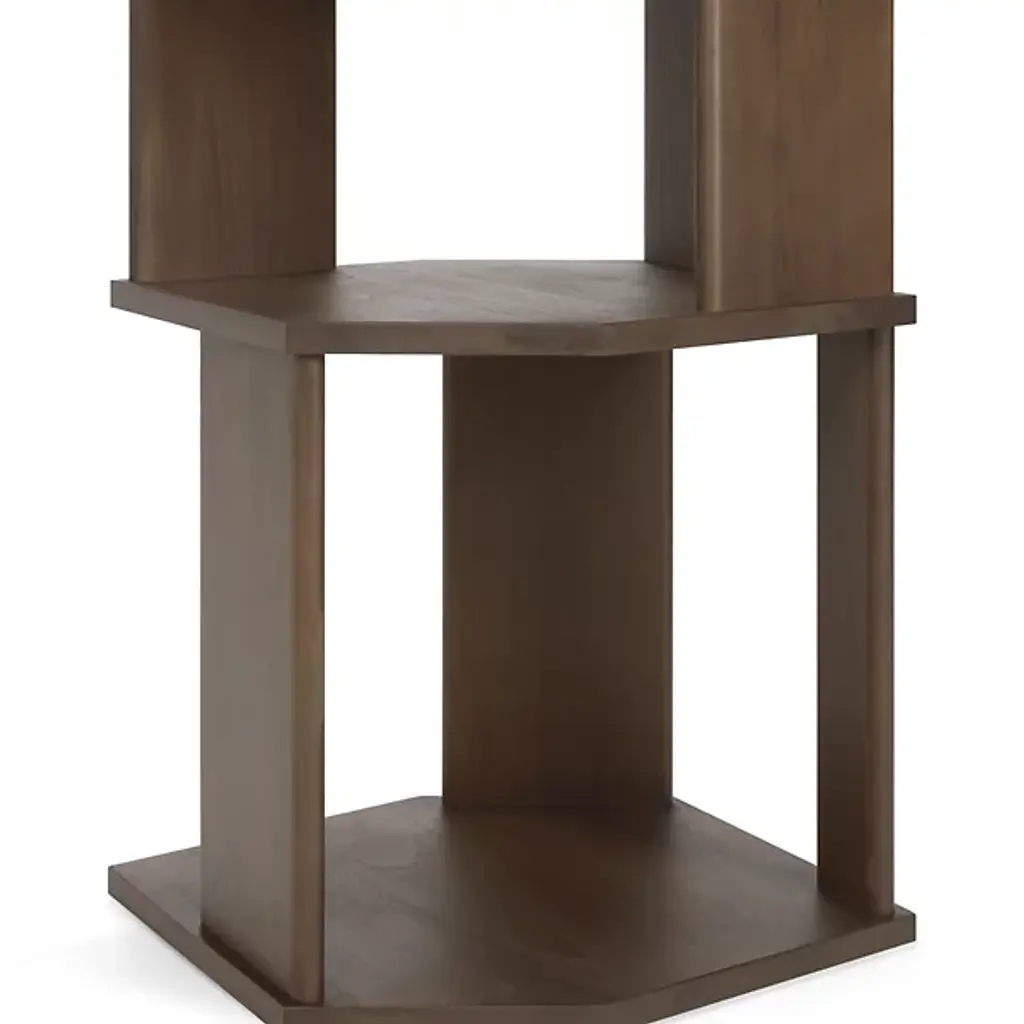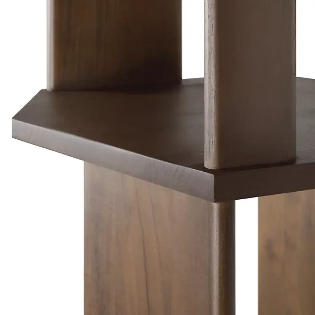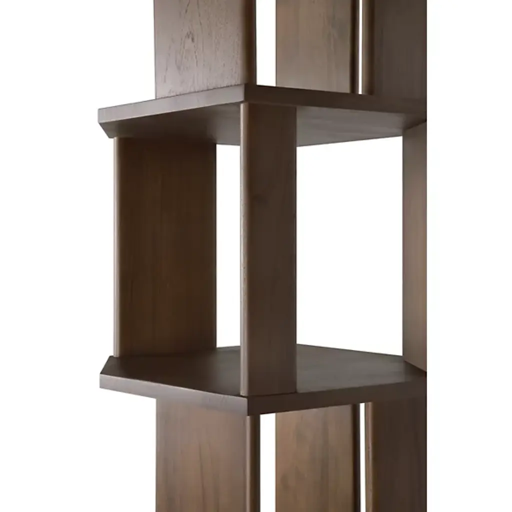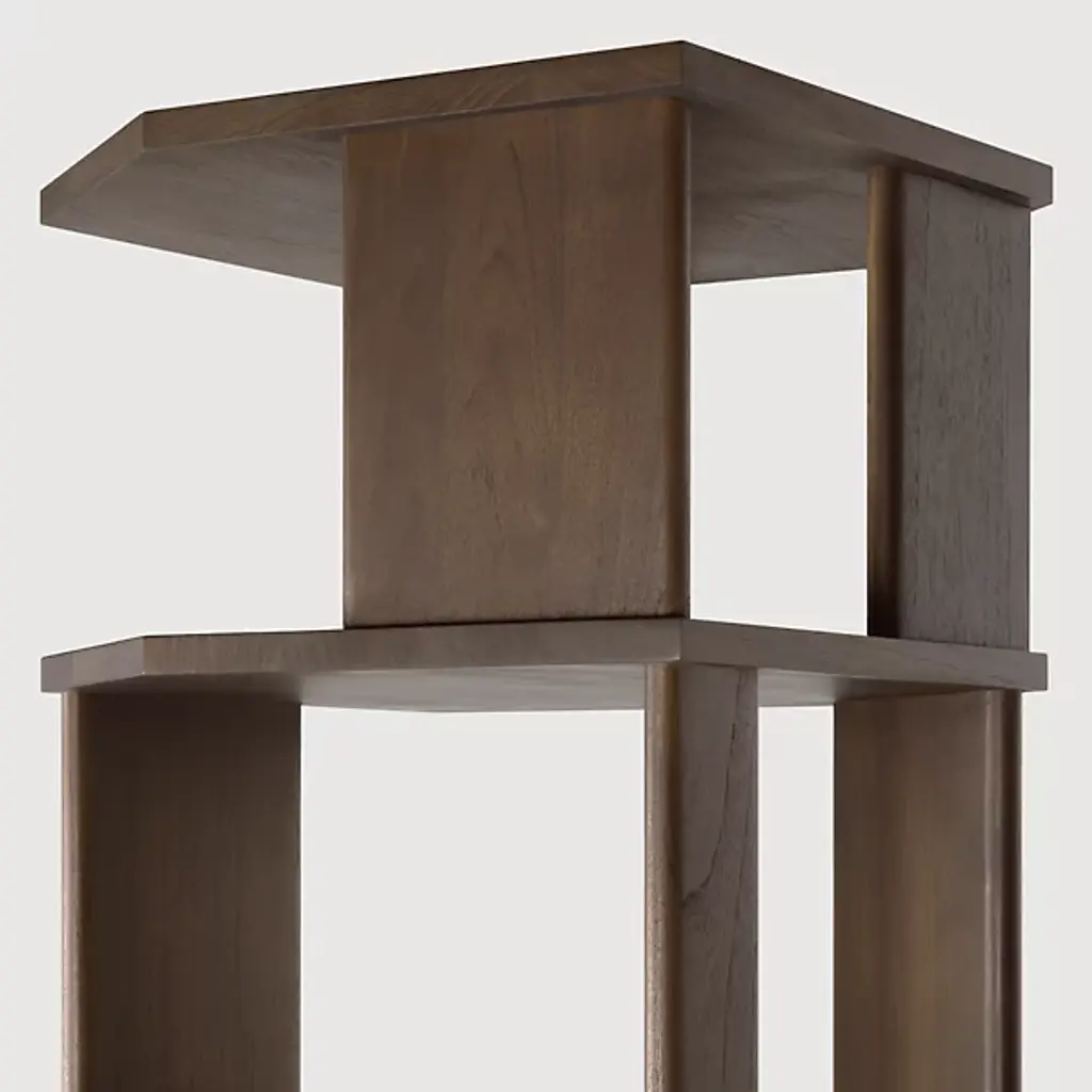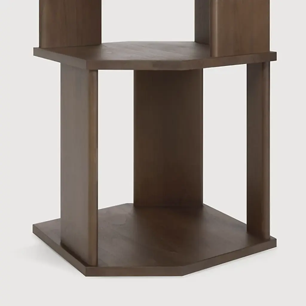Designed as a protest to static objects. The Stairs Column from Ethnicraft moves your eyes from level to level in a sculptural series. The piece stores your objects and celebrates them by providing an attractive view from any angle. Each level of rectangular columns creates an eye-catching silhouette of stairs. The angle-cut shelves heighten the dynamic illusion. Made from oak wood, the piece delights in its naturally radiant color. Woodgrain lines flow from top to bottom, inviting a more in-depth look. A hard wax oil finish keeps the wood surfaces colorful and protected.