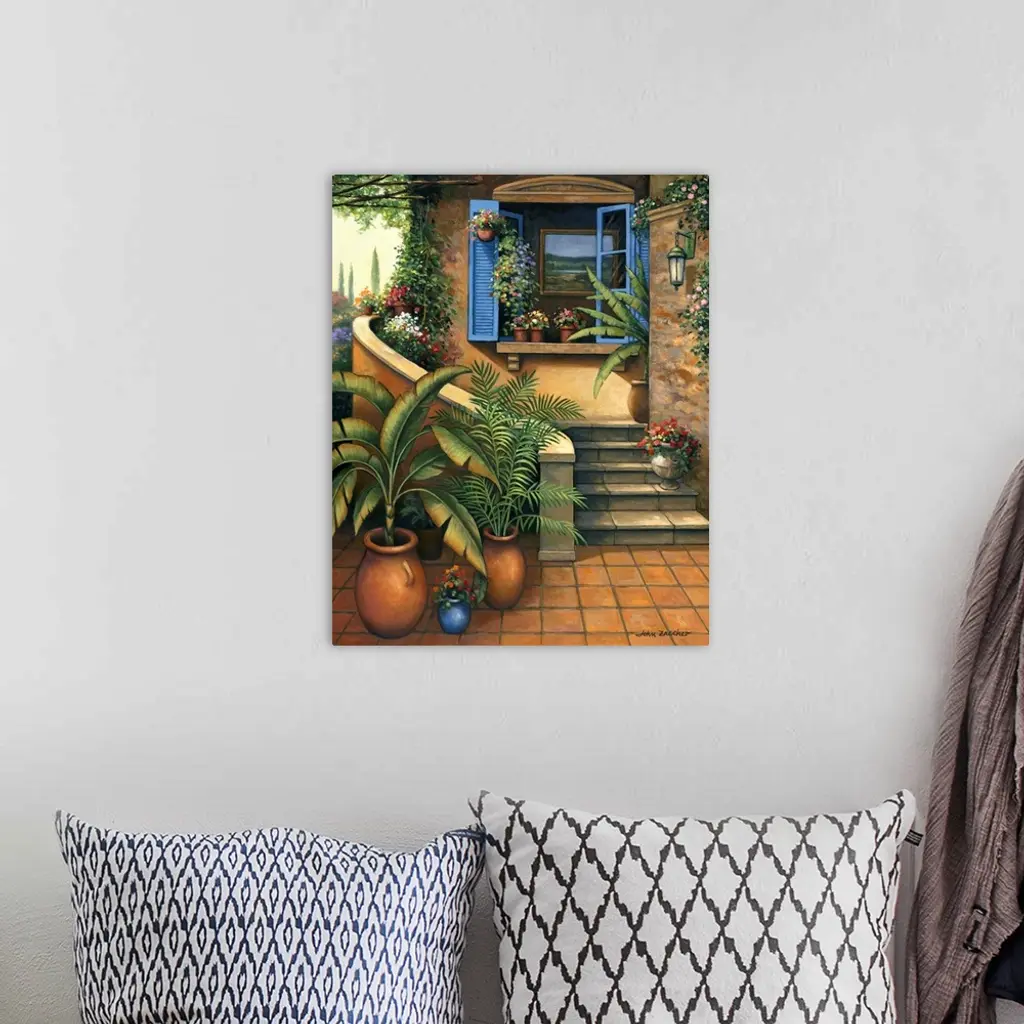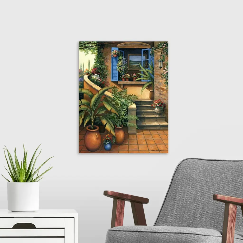 house patio with lots of plants and an open window
