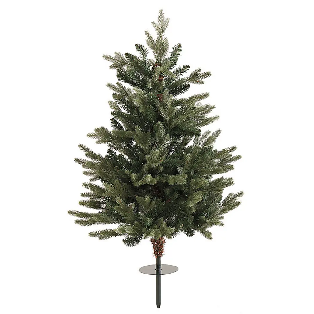 Instant sparkle for your holiday landscape. Our Staked Twinkling Fraser Fir Christmas Tree has a lush natural shape and thick boughs prelit with hundreds of micro twinkle LED lights for a festive, warm white glow. Base is tipped with a black iron stake, so you can stand your tree anywhere in the yard or garden. Outdoor-safe power cord plugs into any standard outlet. Staked Twinkling Fraser Tree features: