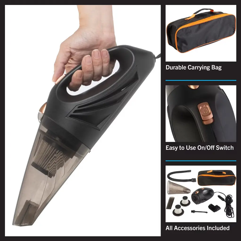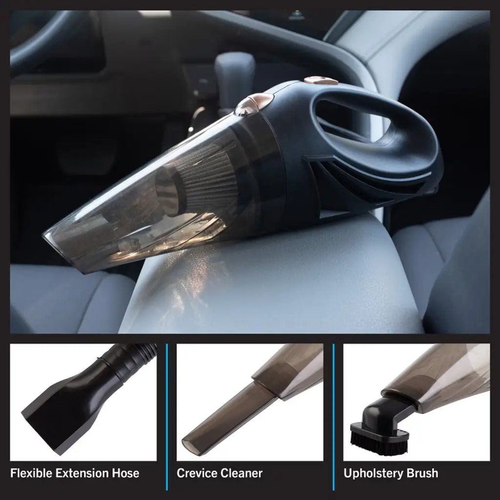 Keep your car, boat, or RV clean with the Mini Vacuum Cleaner and Detailing Accessories Kit by Stalwart. This small vacuum cleaner packs plenty of power into its lightweight and maneuverable body, with the 90W motor providing strong suction while the high-quality fabric filter traps pollen, hair, dirt, and other debris. The portable vacuum features a 16-foot-long cord that plugs directly into your vehicle’s 12V AUX outlet, so you don’t have to worry about racing against a dying battery while you’re detailing your car, and the included upholstery brush, extension hose, and crevice cleaner are sure to get your vehicle looking like it was just driven off the lot.