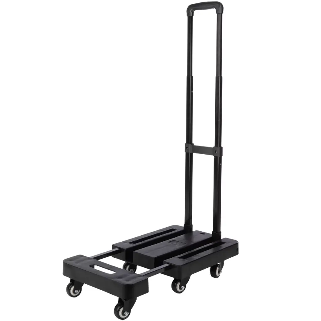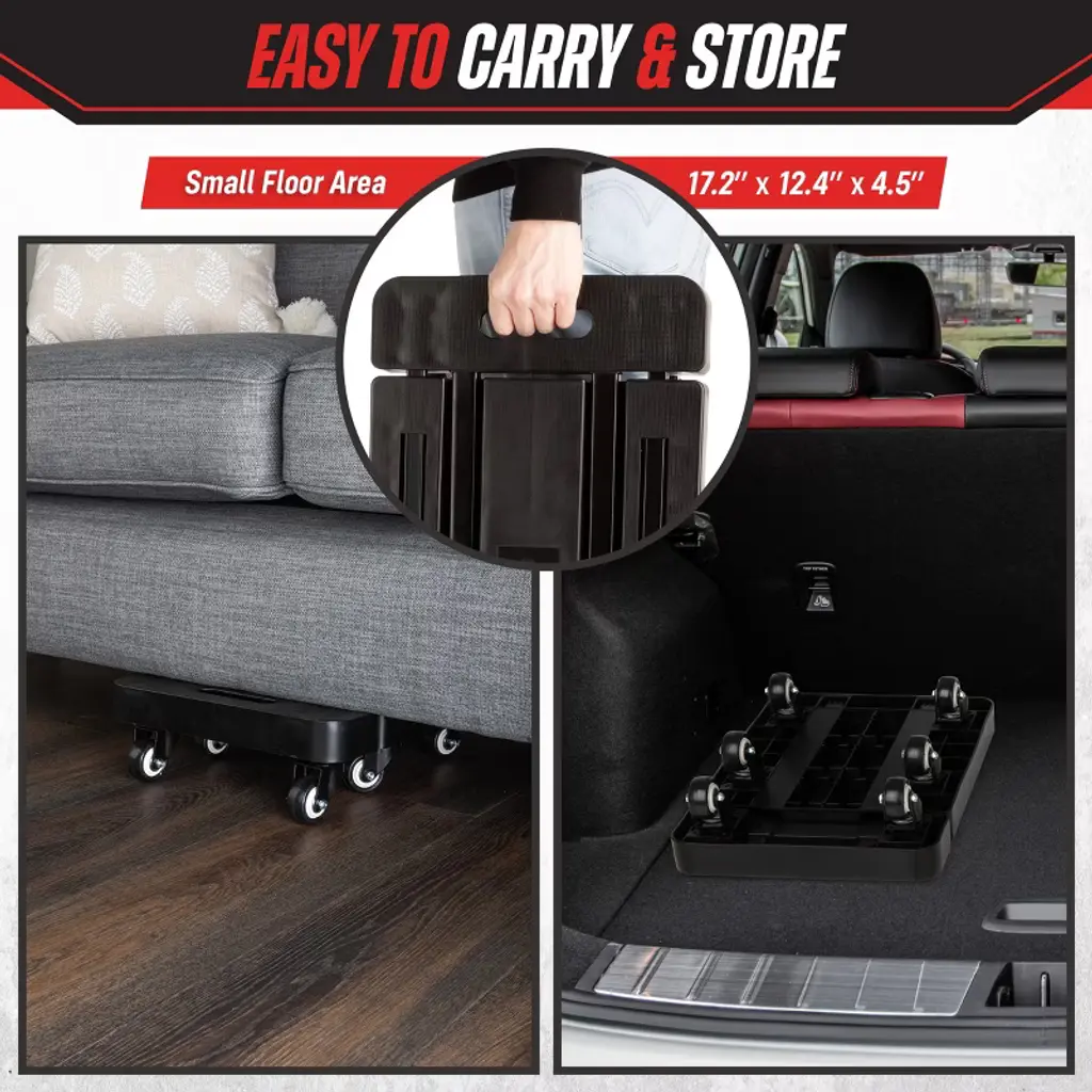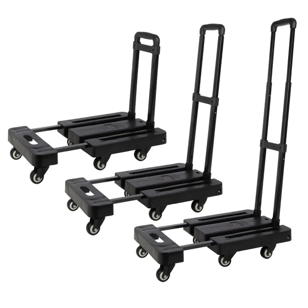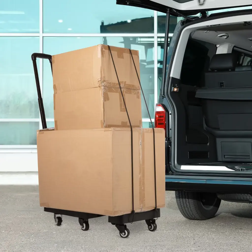 Transport loads up to 500-pounds with ease with the Stalwart Hand Dolly Foldable Cart. This folding utility cart with wheels has a collapsible design, folding down to a compact 4.5-inches-tall for easy flat storage and transport. The telescoping handle allows you to select your comfortable working height, while the six 360-degree swiveling casters make it easy to get moving. Stalwart, for dollies with wheels and other moving supplies that are smart, strong, and secure.