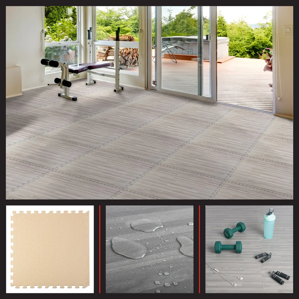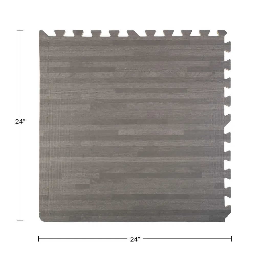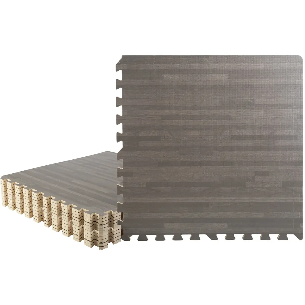 Stalwart Eva Foam Floor Tiles 12-Pack - 48 Sqft Woodgrain Puzzle Mats, Gray - 48