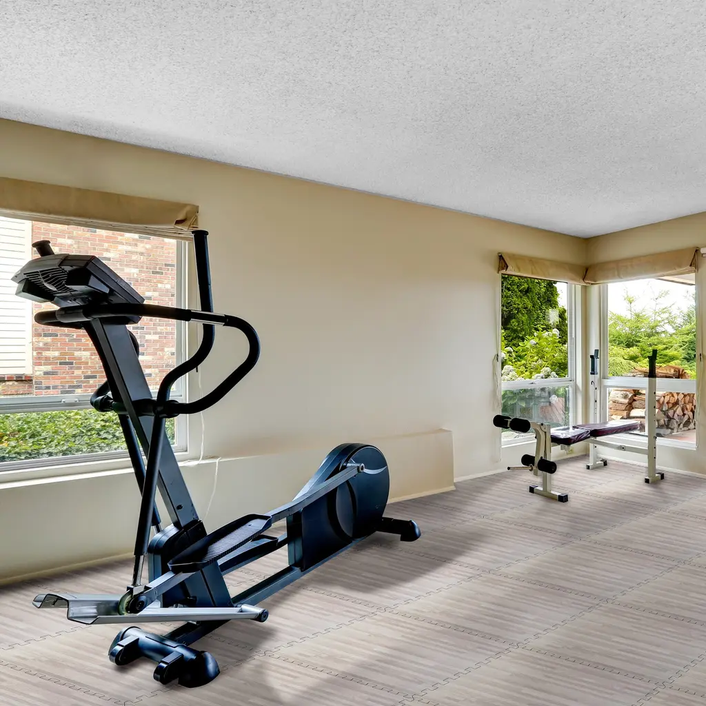 Protect floors while creating a comfortable cushion underfoot with this Set of 12 Interlocking EVA Foam Floor Mat Tiles by Stalwart. The non-toxic, easy-to-clean foam wood mat tiles in this set feature an interlocking design that allows you to configure them to suit your needs, then quickly disassemble them for storage. The EVA foam floor mats enhance the look of any room with their hardwood appearance available in a variety of stylish woodgrain shades, while also providing soft cushioning that is perfect for creating a padded play mat for kids, using as gym mat flooring, or adding shock-absorbing comfort to your kitchen, garage, basement, or any other area of your home.