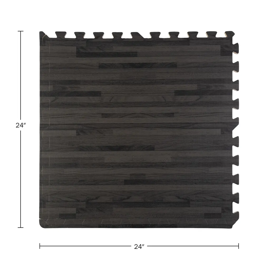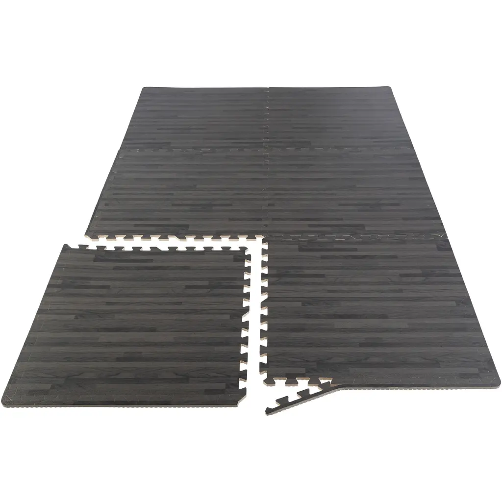 Stalwart Eva Foam Floor Tiles 6-Pack - 24 Sqft Woodgrain Puzzle Mats, Black - 24