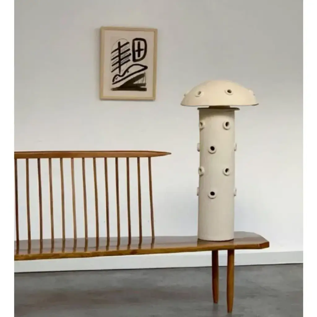 Xl standing lamp by olivia cognet materials: ceramic. Dimensions: d 58 x w 42 x h 70 cm since moving to los angeles in 2016, french artist and designer olivia cognet has focused on ceramics as the fertile medium through which she expresses her boundless creativity. With the freedom this material affords to explore every type of shape and size, she creates monumental bas-reliefs and giant totems as well as chairs, tables, lamps and vases. These unique pieces, handmade by the artist in her studio, all share the same high aesthetic, abstract and graphic standards. this piece is attributed to the mentioned designer/maker. It has no attribution mark and no official proof of authenticity, however it is well documented in design history. I take full responsibility for any authenticity issues arising from misattribution, up to 250v (europe/uk standard).