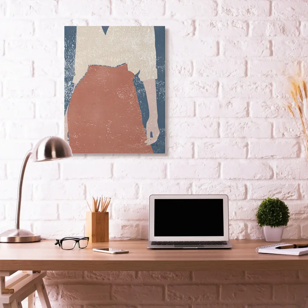 Standing Person Red Blue Textured Surface Design, 30"x40"