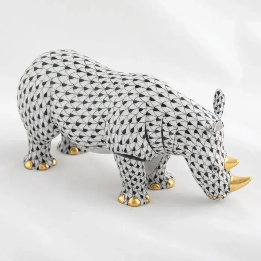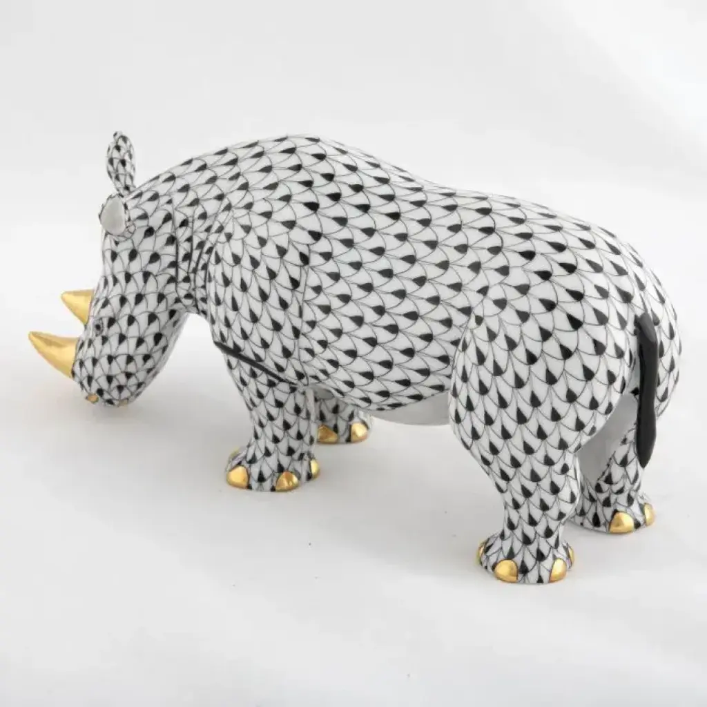 Endearing animals meek and bold, large and small, demure and majestic eagerly await the chance to melt your heart and warm your home. Each is brought to life by the skilled hands of artisans crafting and painting these charming porcelain creatures. The famous fishnet décor adorning many of the animals took form in 1858 when a Herend painter became inspired by a fishscale design he saw on a Chinese porcelain plate and painted a similar pattern onto a rooster figurine to imitate feathers. The rest is history, with the fishnet design now a Herend signature prized worldwide. Now the biggest porcelain manufactory in Europe, Herend was founded in 1826 to produce earthenware in the small Hungarian village for which it was named. At the time, Hungary was flooded with low-cost pottery, but in 1839, Mor Fischer became the Manufactory’s new owner and he decided to focus on producing dinnerware replacement pieces for Europe’s royal families to complement their valuable porcelain patterns from Germany and the Far East. As his client base grew, Fischer commissioned his artists to begin designing dinnerware patterns of their own. Queen Victoria’s 1851 purchase of a large set for Windsor Castle was a milestone, setting the stage for aristocrats throughout Europe to clamor for Herend in their estates. In the 1850s, Herend added meticulously-crafted figurines to its creations. Herend’s trademark fishnet pattern, which is widely recognized and prized as Herend’s signature design, started in 1858 when an artist who was intrigued with a Chinese plate’s fish scale design painted it onto a rooster figurine to imitate feathers.