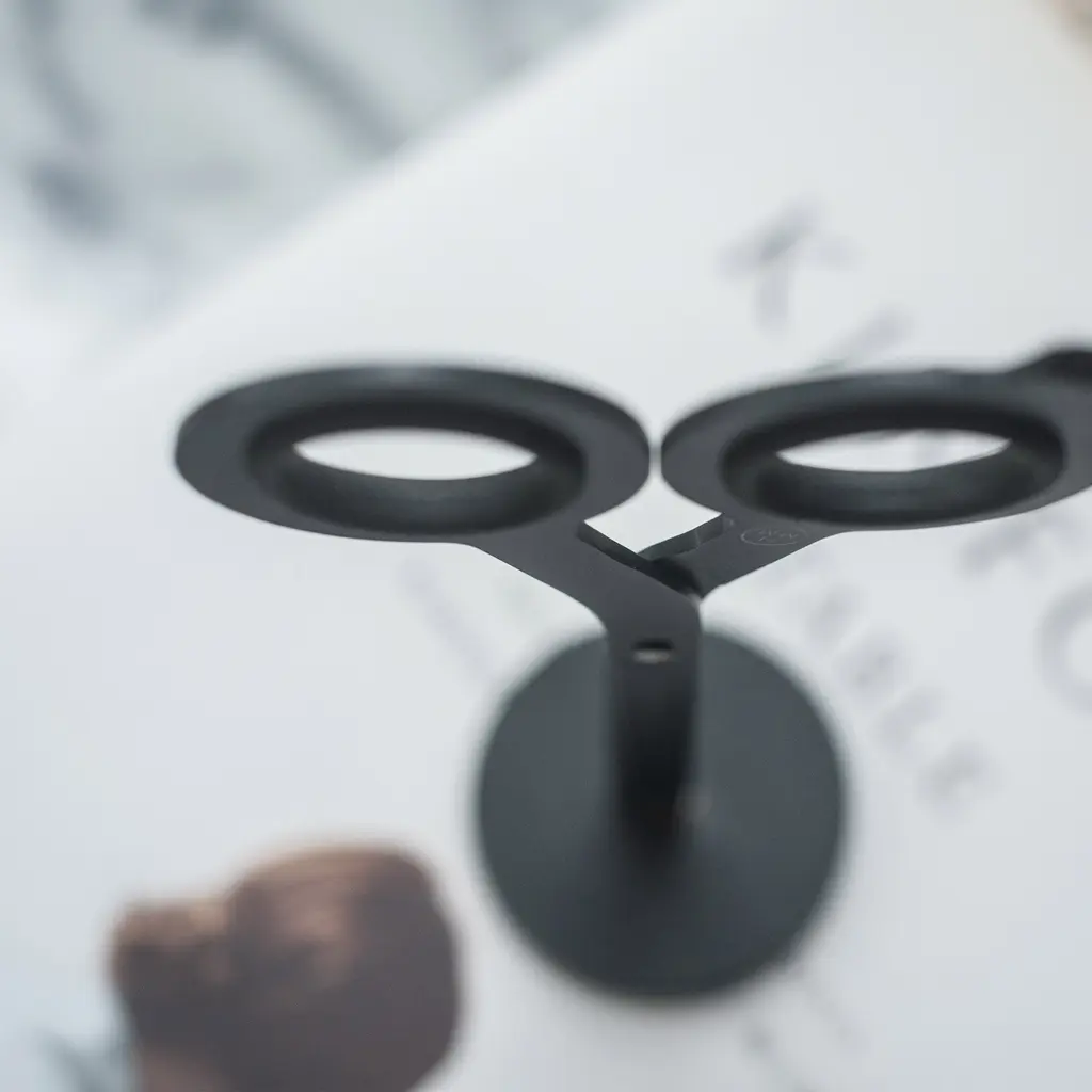 The award-winning HMM Scissors are sleek and minimalist, bringing a touch of refined style to your work space. Their 2-in-1 design allow the user to simply flip the scissors in order to transform them into a convenient box cutter. A blend of Japanese steel and expert Taiwanese craftsmanship, the HMM Scissors provide efficiency and accuracy with every cut. The wide blades and weighted feel improve control and performance further. A base that incorporates a custom-made magnet allows the user to keep the scissors on display and transform them into a decorative object thanks to their elegant lines. These scissors are crafted from stainless steel and boast a black Teflon coating, while the base is made of milled aluminum.