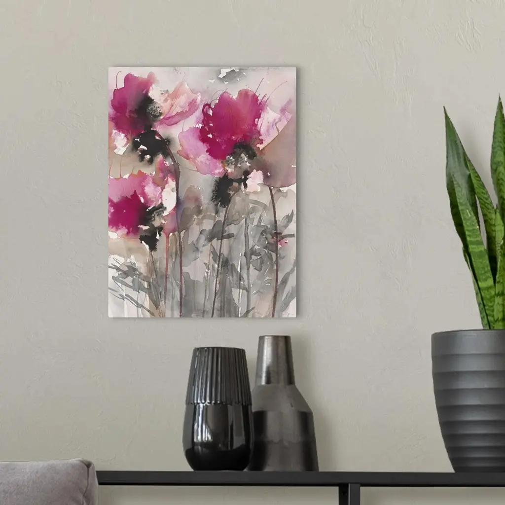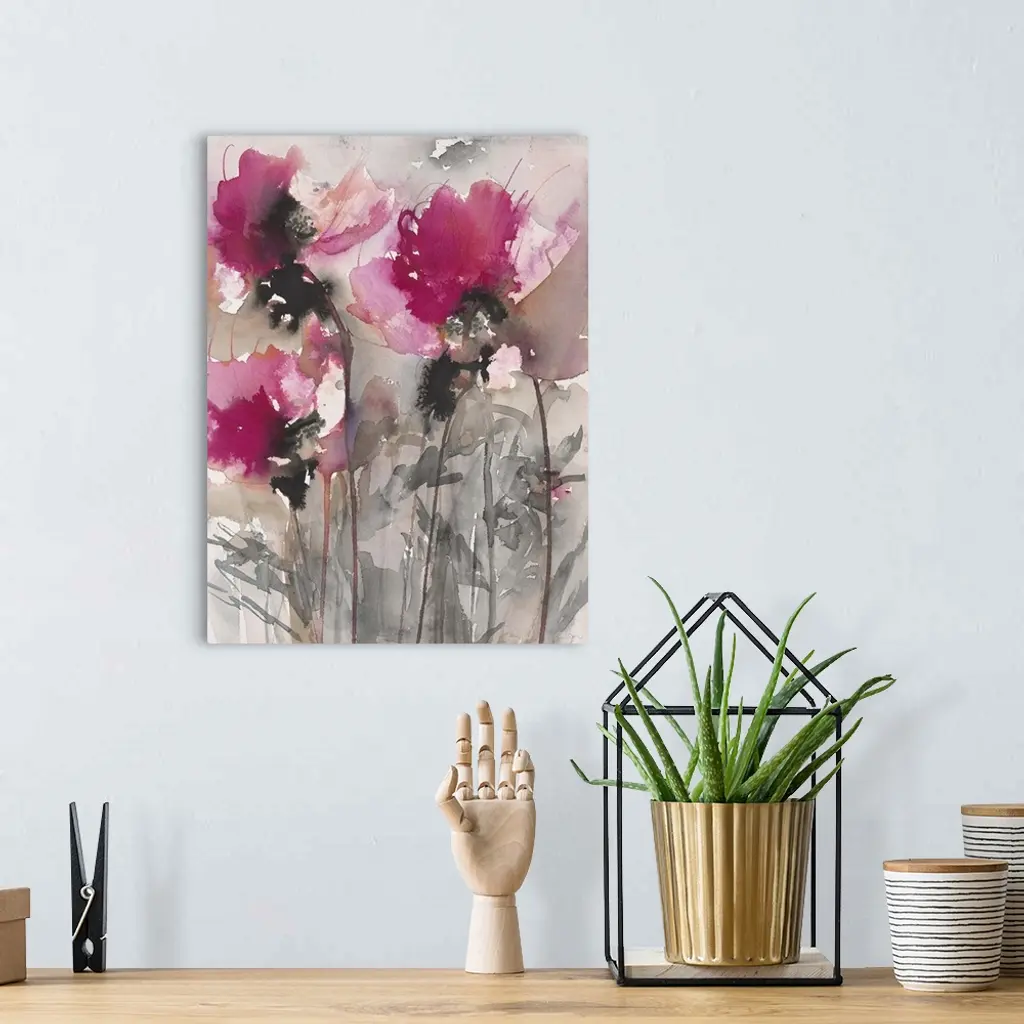 Contemporary artwork of watercolor flowers with vibrant colors.