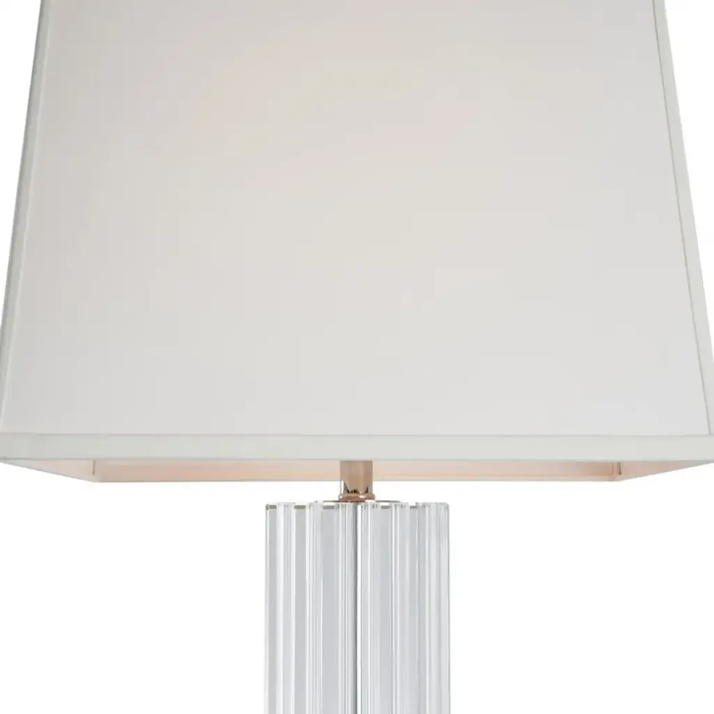 The Stanford Lamp is a stunning display of elegance and clarity, featuring a tall, fluted crystal base that catches and reflects light with graceful precision. Its clean lines and tapered shade create a timeless silhouette, making it a sophisticated addition to both traditional and modern interiors.