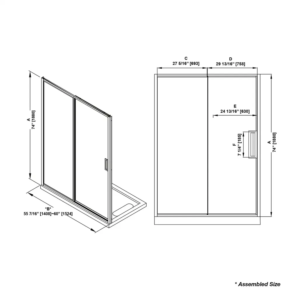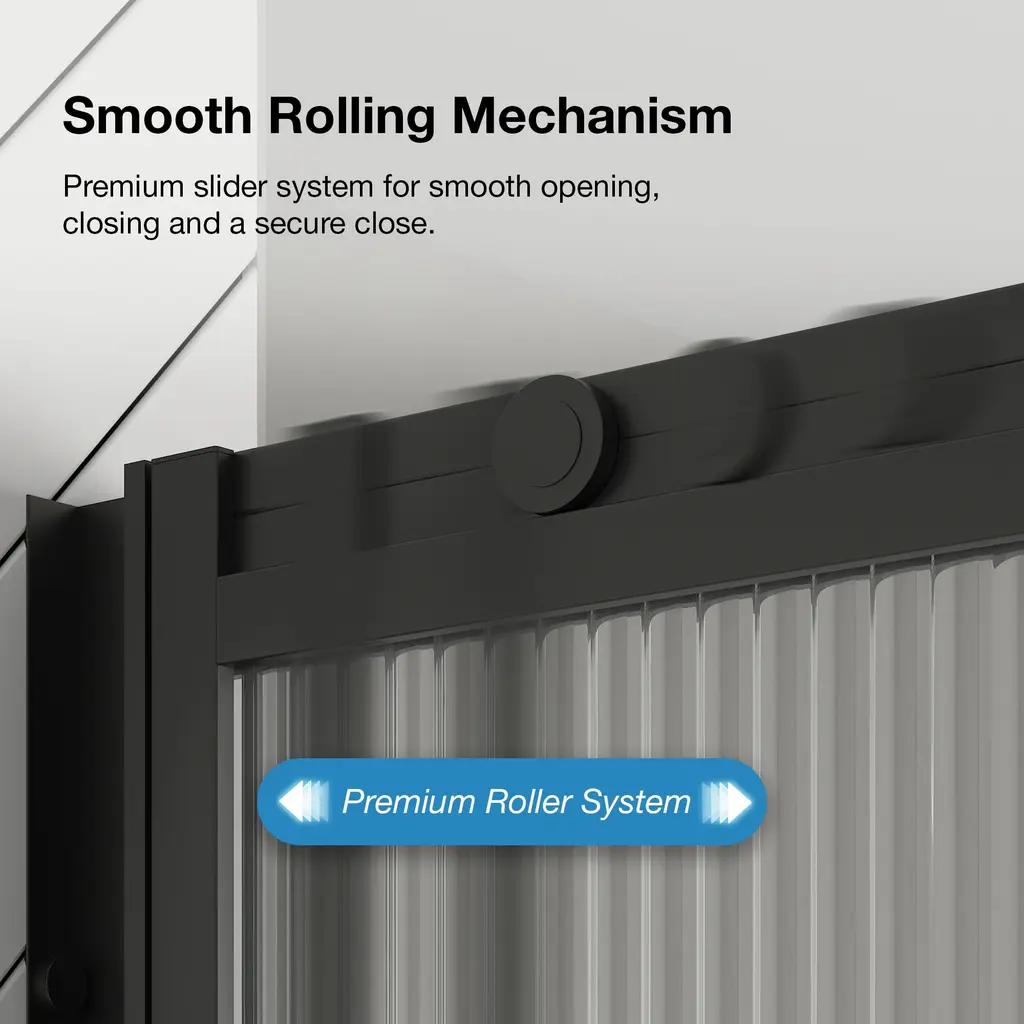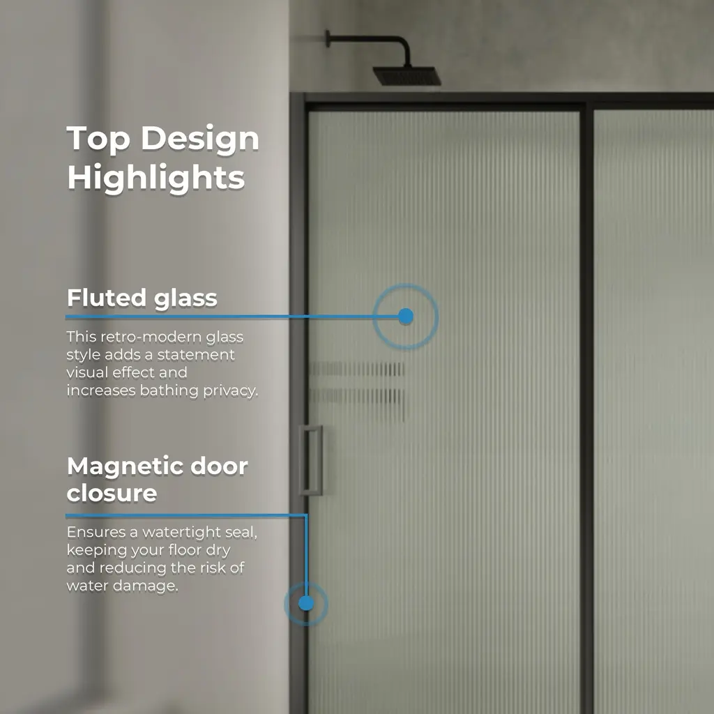 Stanford Sliding Clear Alcove Shower Door - 60" - Clear Fluted - Black