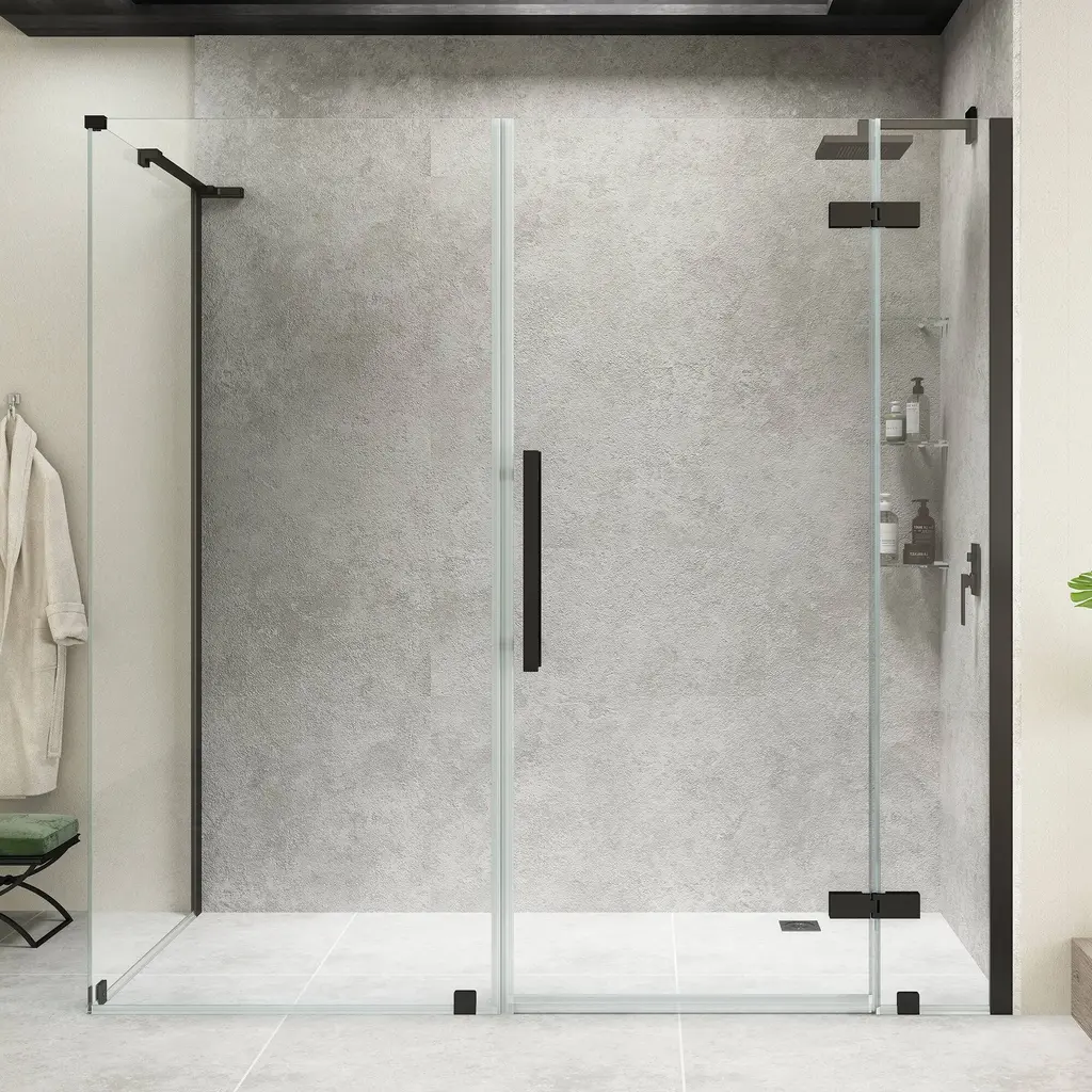 Add a trendy yet enduring aesthetic to your bathroom project with the Stanford glass sliding shower door from OVE Decors. Available in your choice of gold, black or satin nickel finishes, it features sleek integrated handles and a slim framed design that lets nothing get in the way of this door’s minimalist good looks. Its fixed panel and smooth-rolling door are made of tempered glass with a protective coating that defends against soap scum and limescale buildup for safety, durability, and fuss-free care. A magnetic closure prevents leaks while reversible installation lets your contractor to set up the door on the left or right side to suit your space.