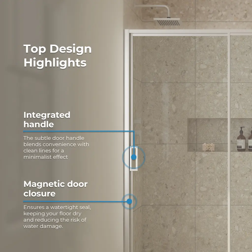 Add a trendy yet enduring aesthetic to your bathroom project with the Stanford glass sliding shower door from OVE Decors. Available in your choice of gold, black or satin nickel finishes, it features sleek integrated handles and a slim framed design that lets nothing get in the way of this door’s minimalist good looks. Its fixed panel and smooth-rolling door are made of tempered glass with a protective coating that defends against soap scum and limescale buildup for safety, durability, and fuss-free care. A magnetic closure prevents leaks while reversible installation lets your contractor to set up the door on the left or right side to suit your space.