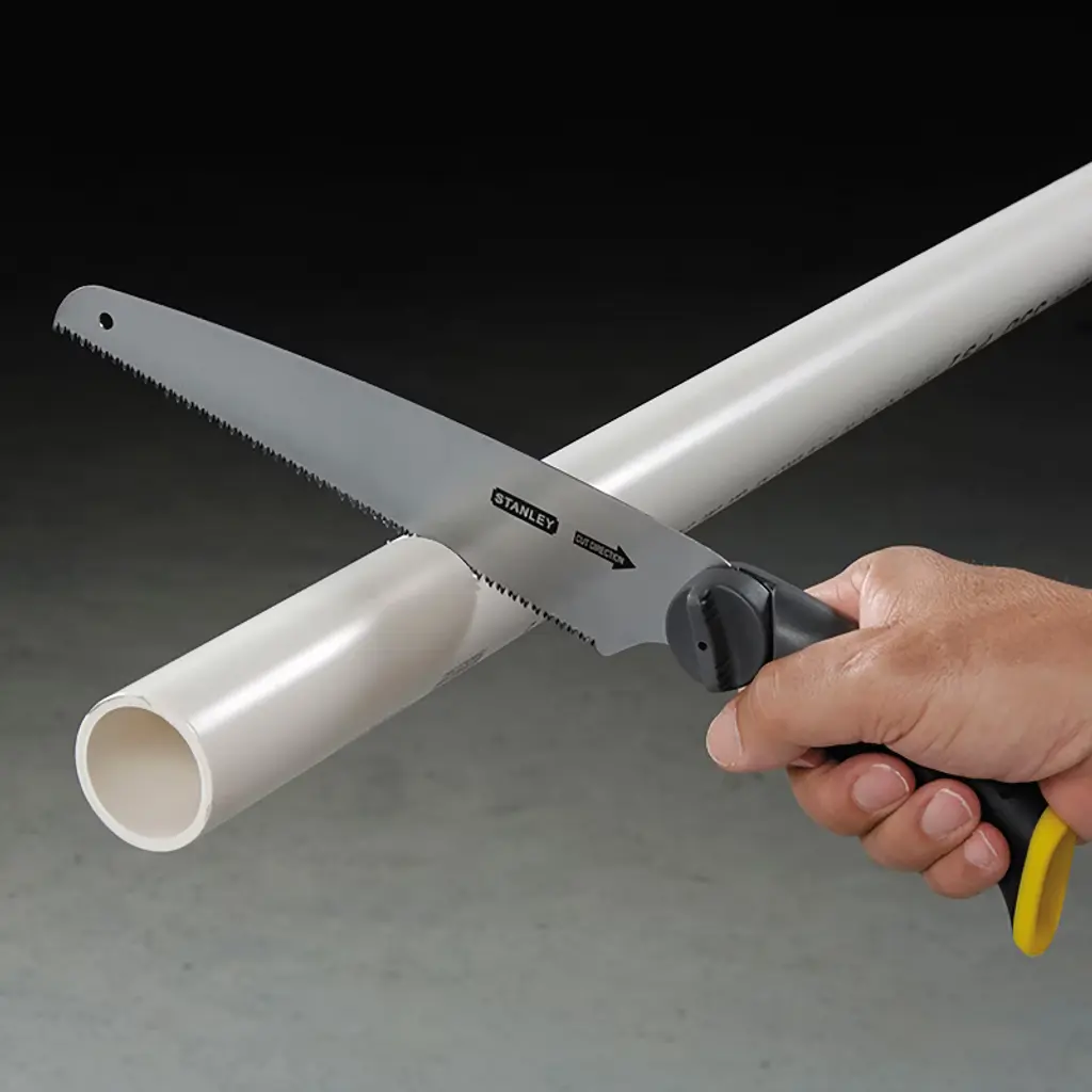 This STANLEY® 3-in-1 Multipurpose Saw Set is equipped with an ergonomically designed handle made with glass-filled, high-strength nylon to support 6 different blade positions. The diamond pattern and rubber over-molding on the handle allows you to use the saw without losing your grip. The saw also has an integrated blade storage - just turn the knob and conveniently store all 3 blades on the handle when not in use. Plus, there are no tools required for blade change, making this saw easy to use.