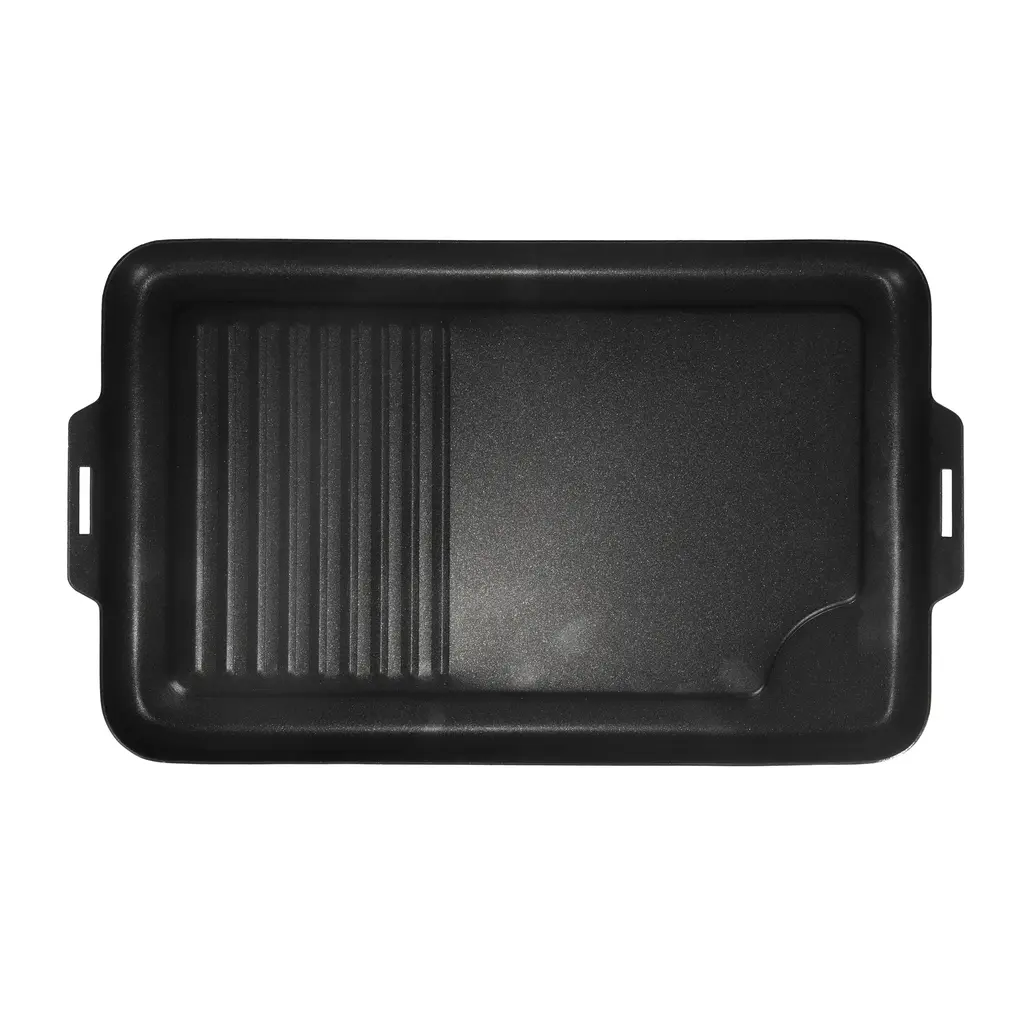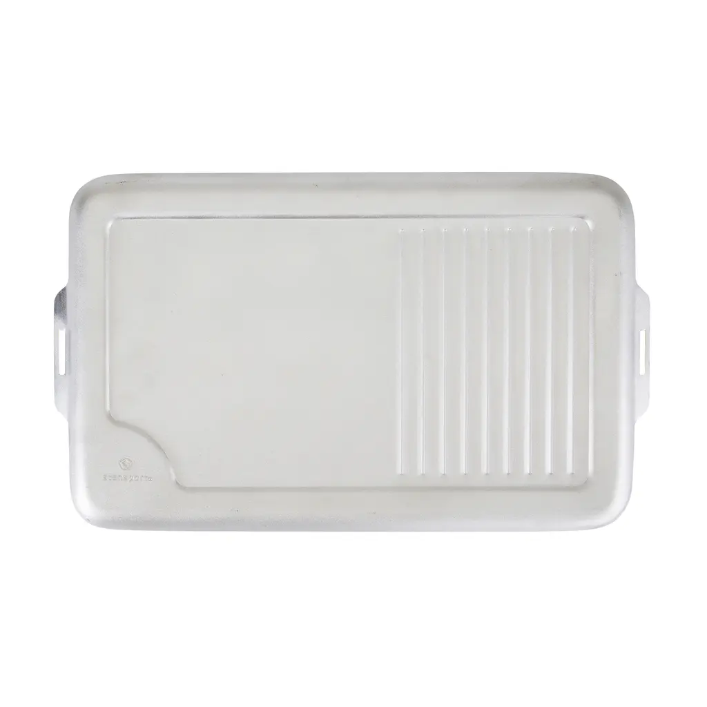Our lightweight aluminum griddle cooks up backcountry staples with ease. Pancakes, bacon, burgers, fish - you'll be able to cook all of it on the durable, non-stick surface. Better, the finish requires minimum oil to cook and is incredibly easy to clean. Constructed of lightweight aluminum, this griddle is much lighter than cast iron versions of comparable size.