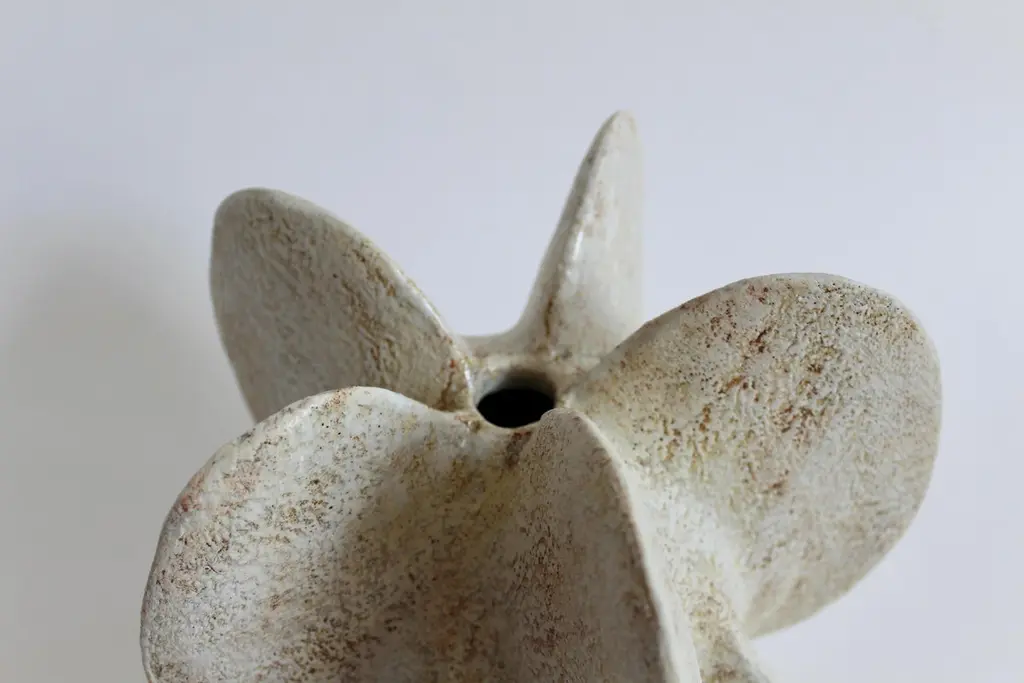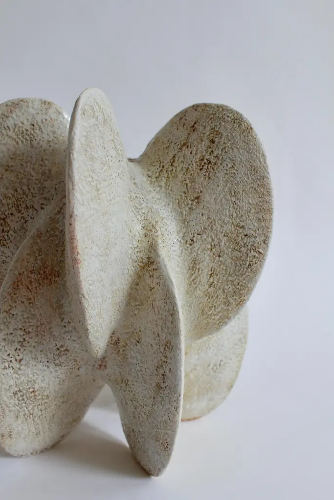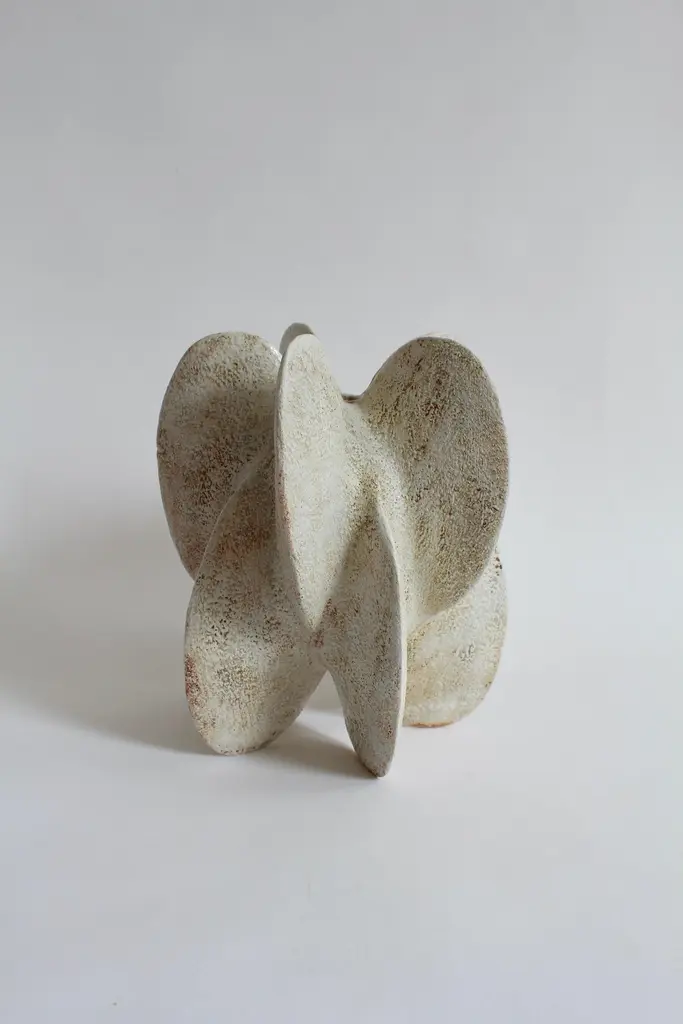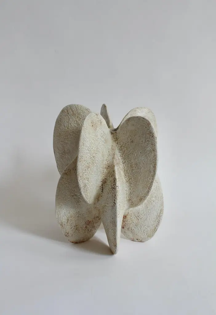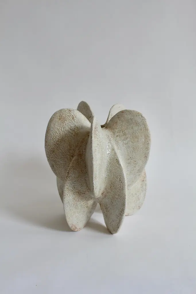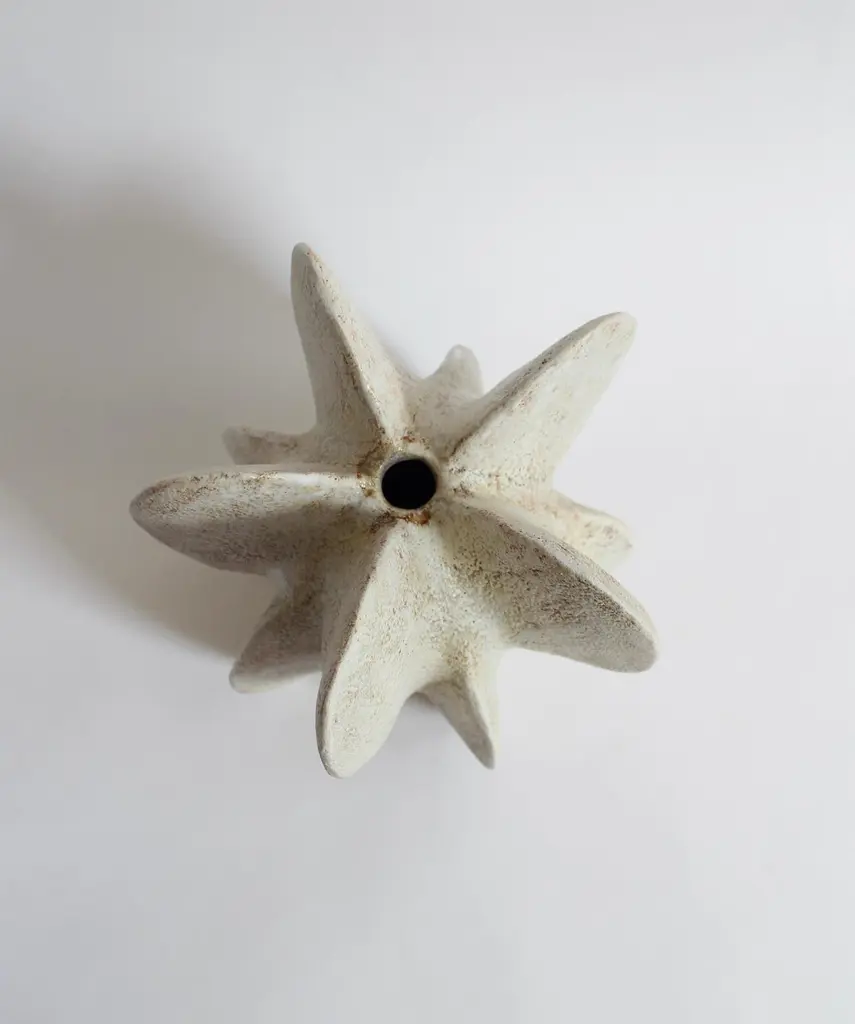 Star petal gourd III by Julie NelsonOne Of A KindDimensions: D 22 x H 26.5 cmMaterials: Ceramic stoneware and porcelainArtist Julie Nelson uses the materiality of clay as a means to explore naturally occurring patterns and repetitions.Random variation is achieved by hand building in stoneware and porcelain with layers of slip, porcelain and matt glazes that accentuate elemental and microscopic detail within the surface texture.Julie’s interest in the natural world was encouraged by a childhood spent on the coast collecting pebbles and shells on days out. This has led to an abiding interest in the connectedness of our environment.Julie specialised in ceramics for her B.A. design degree in London, which was followed by exhibitions in the USA and Europe. She has now returned to living on the coast and works from her studio in Brighton. This coastal setting has informed her work and inspired her to develop installations that continue the theme and variation of the universal patterns found in nature.