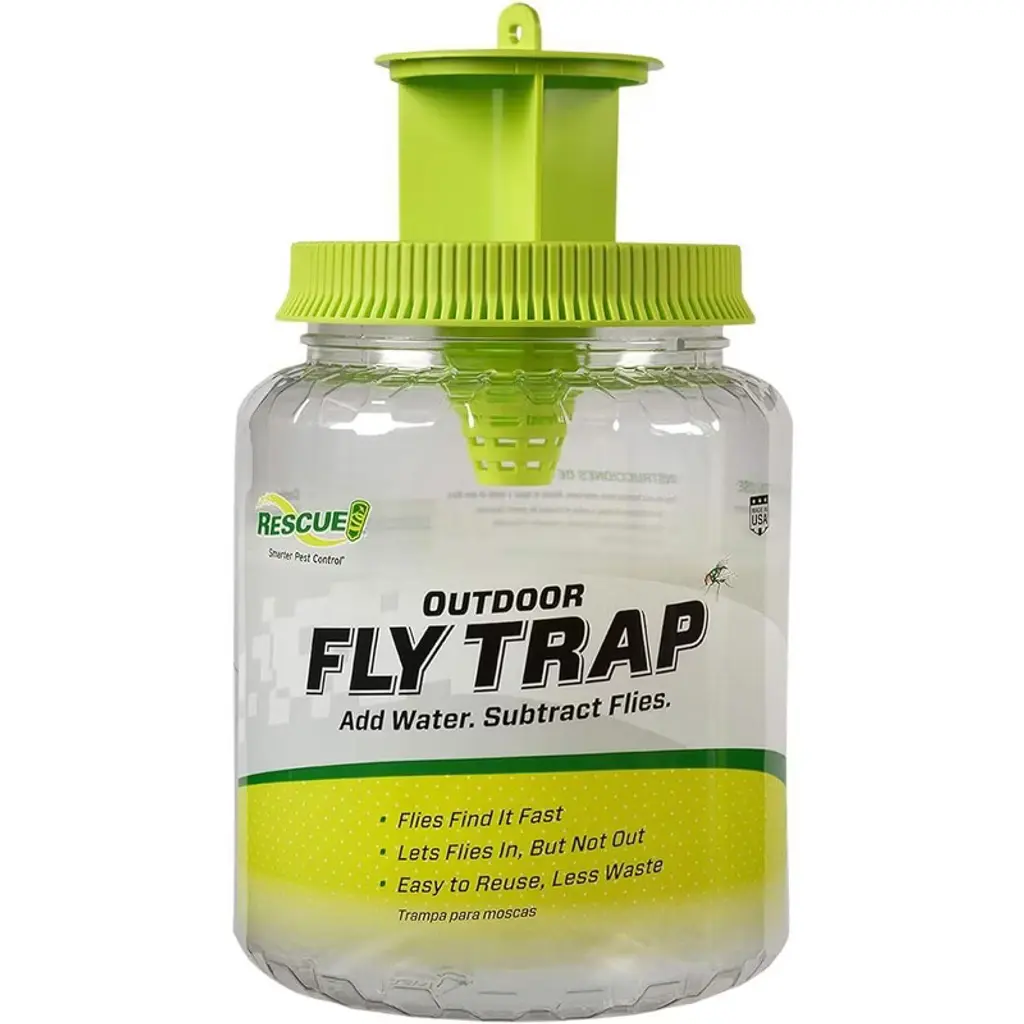 Captivator fly trap, the heavy-duty, reusable and economical plastic jar comes complete with 1 tube of attractant. Just squeeze attractant into jar and add water. Captivator fly traps one-way entry system keeps flies in the trap and its 2 quart capacity means minimal maintenance. Say goodbye to buzzing and swatting with the Starbar Captivator Fly Trap.