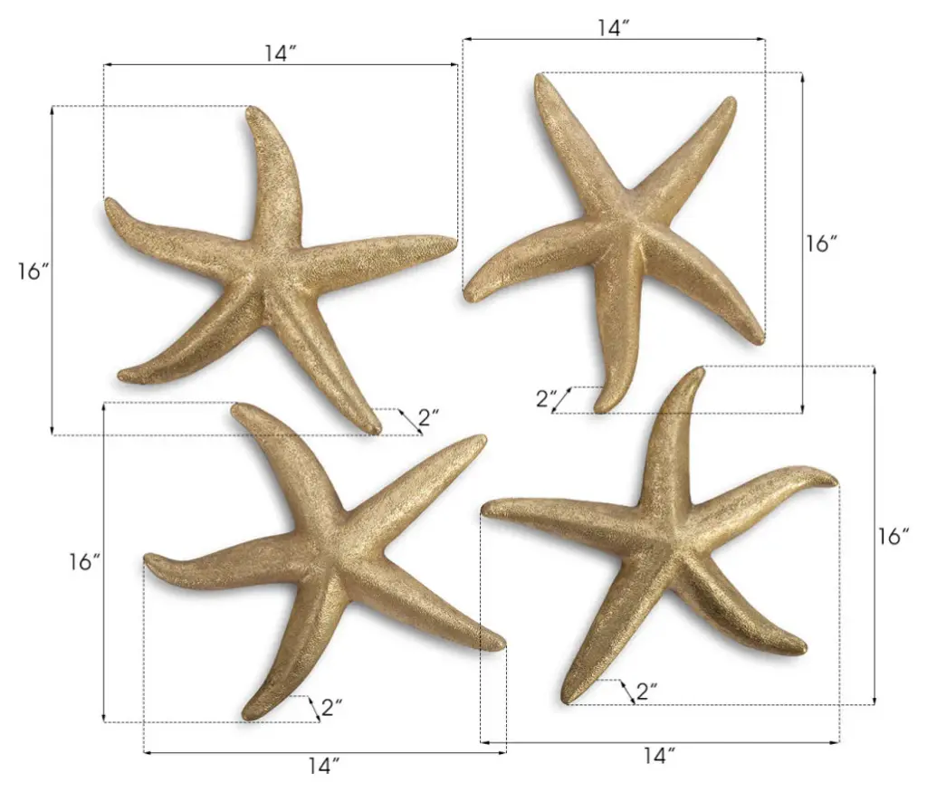 Starfish, Gold Leaf, 4-Piece Set, Small, Gold, Medium
