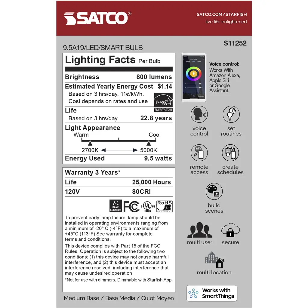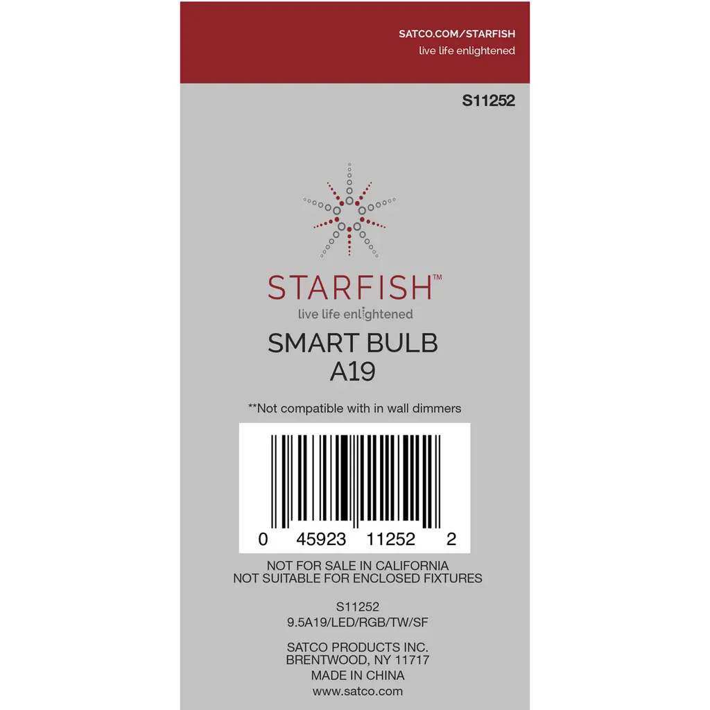 9.5 Watt - A19 LED Lamp - RGB and Tunable White - Starfish IOT - 120 Volts - 800 Lumens