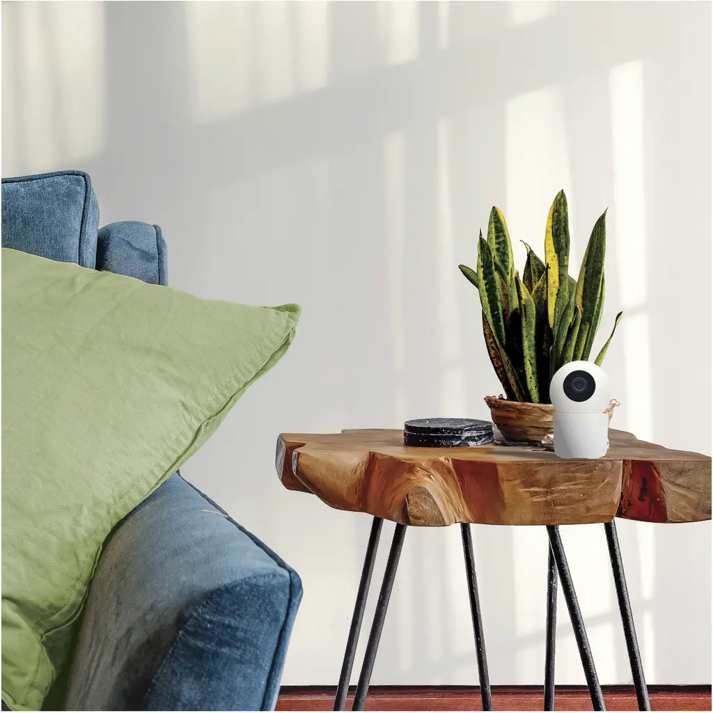Easily expand home security with SATCO NUVO's 65-945R1 Smart Indoor Pan and Tilt Camera. Easily mount to the ceiling or wall to view any indoor space. Use the app to adjust the viewing angle panning 355 degrees and tilting -10 degrees to 40 degrees. View real-time or review motion activated events from anywhere on your mobile device with the STARFISH app. Discreetly listen in or actively engage in conversation with the two-way talk feature. Best of all, no subscription fees, ever. This camera is also compatible with Google Home, Siri, SmartThings, and Alexa, including the Alexa Show.