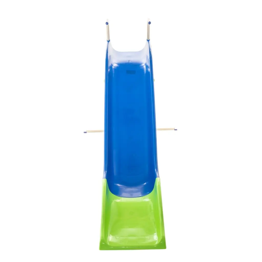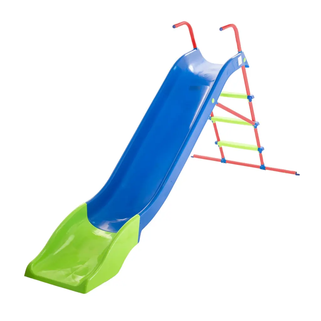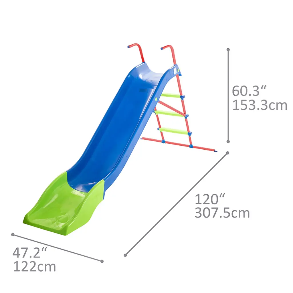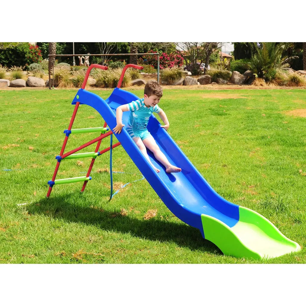 The Large Childrens Slide with Water Feature is a great addition to any yard. This tall slide will function as a normal slide but hook up a hose and it is trasformed into a fun waterslide. In bright blue and green colors, it'll be tons of fun for all kids ages three and up