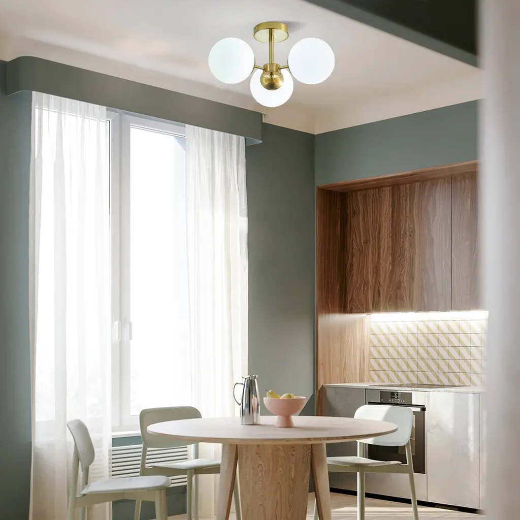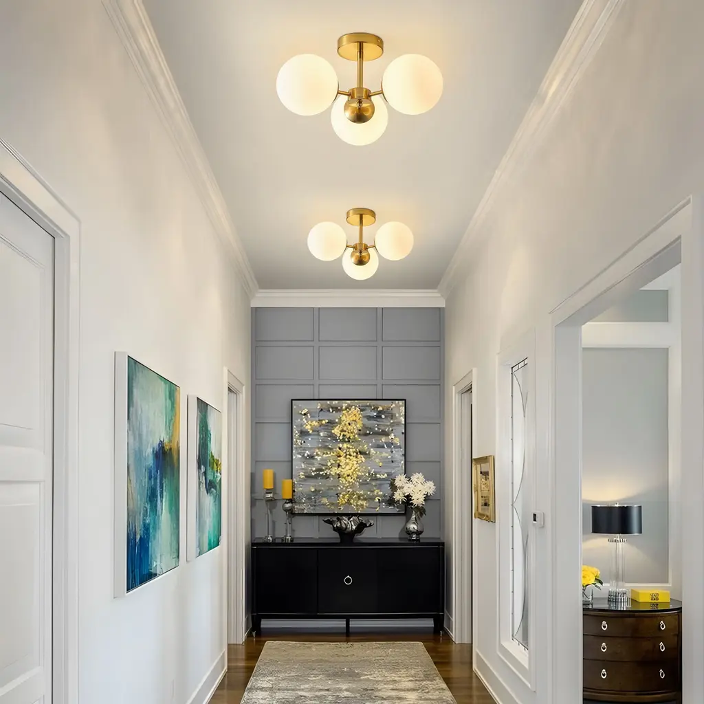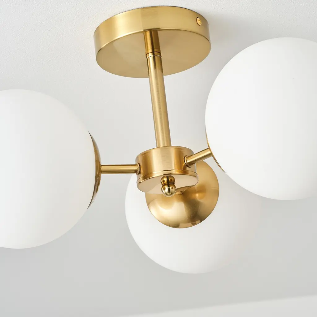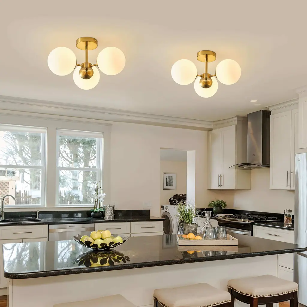 Elevate your space with the contemporary charm of the Starsky Semi-Flush Mount. Featuring a striking fusion of modern design and celestial inspiration, this fixture boasts a gold finish reminiscent of a Sputnik, complemented by frosted and twisted bubble glass globe bubbles. The Frosted Bubble option diffuses soft, inviting light, creating a cozy atmosphere, while the Twisted Bubble option casts captivating patterns with its textured glass, adding an elegant touch to any modern or traditional interior. With its Sputnik-inspired silhouette, this semi flush mount serves as a captivating focal point in any room.Features:Product Details:Dimensions:Cleaning Note:
