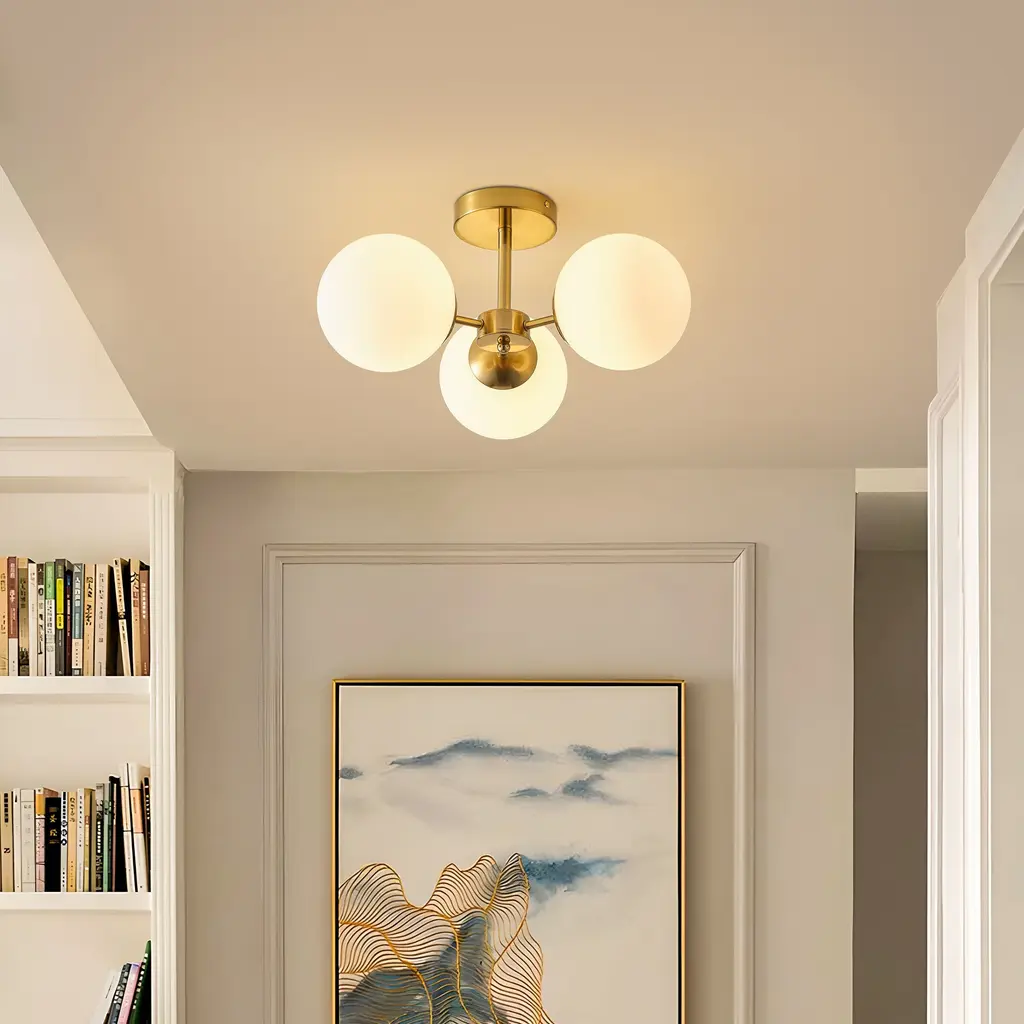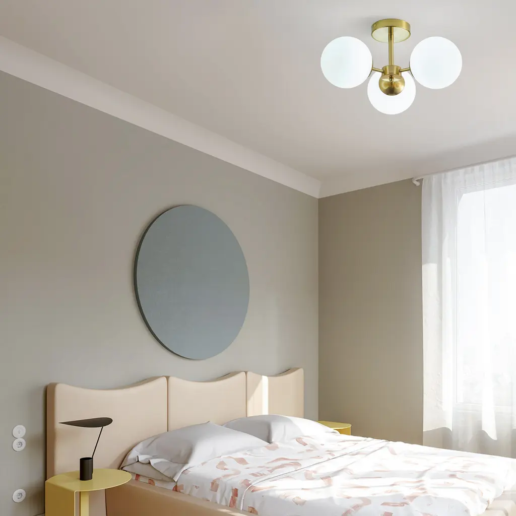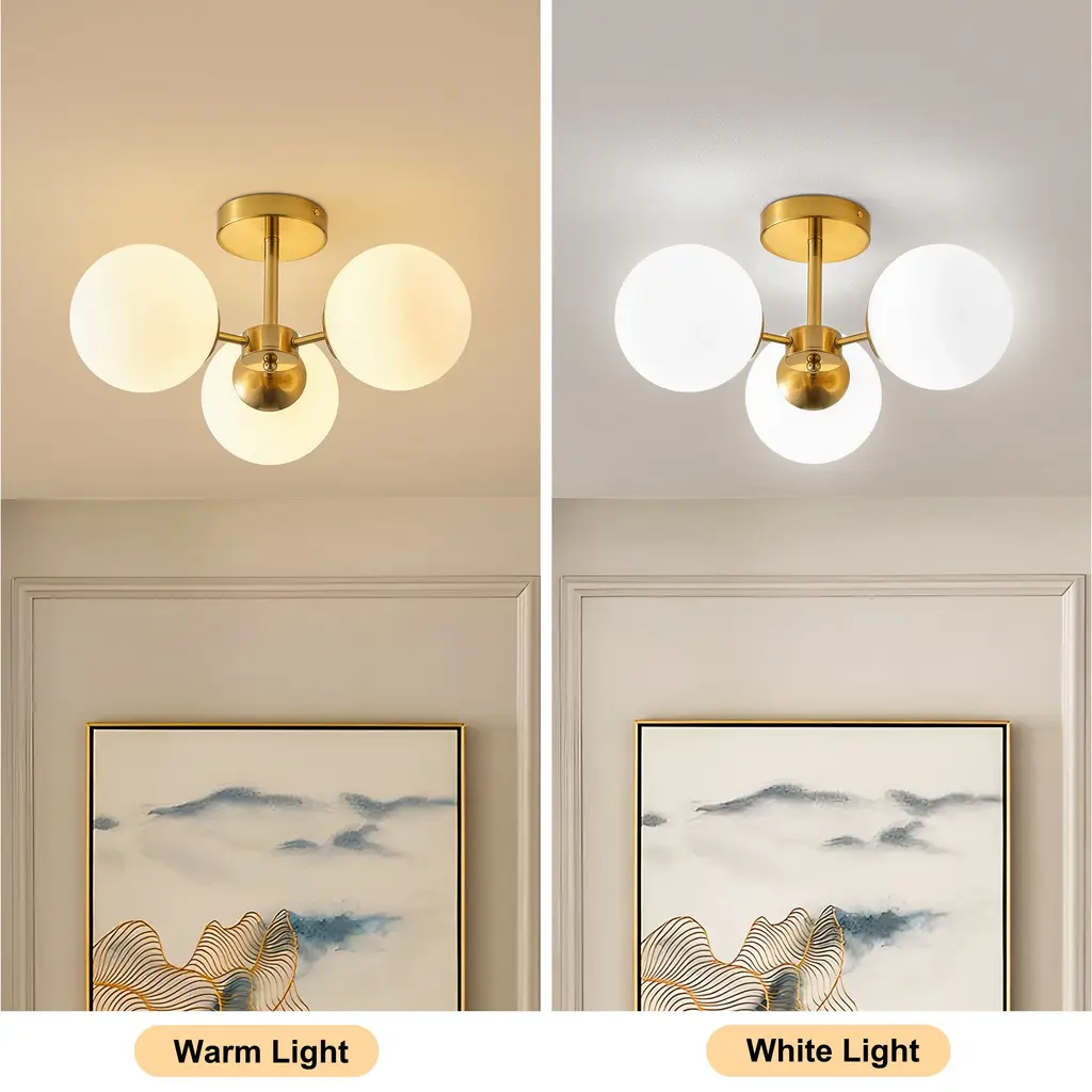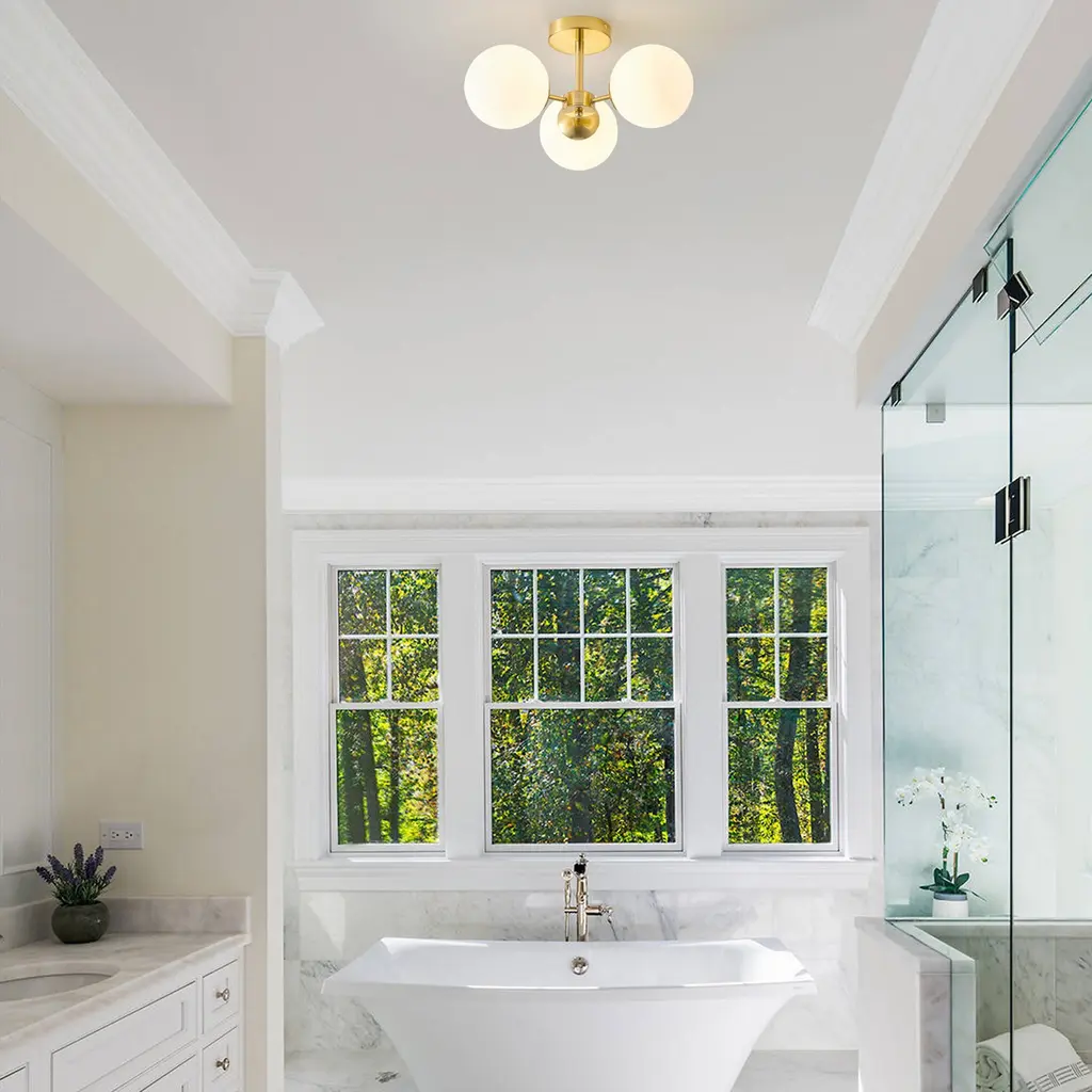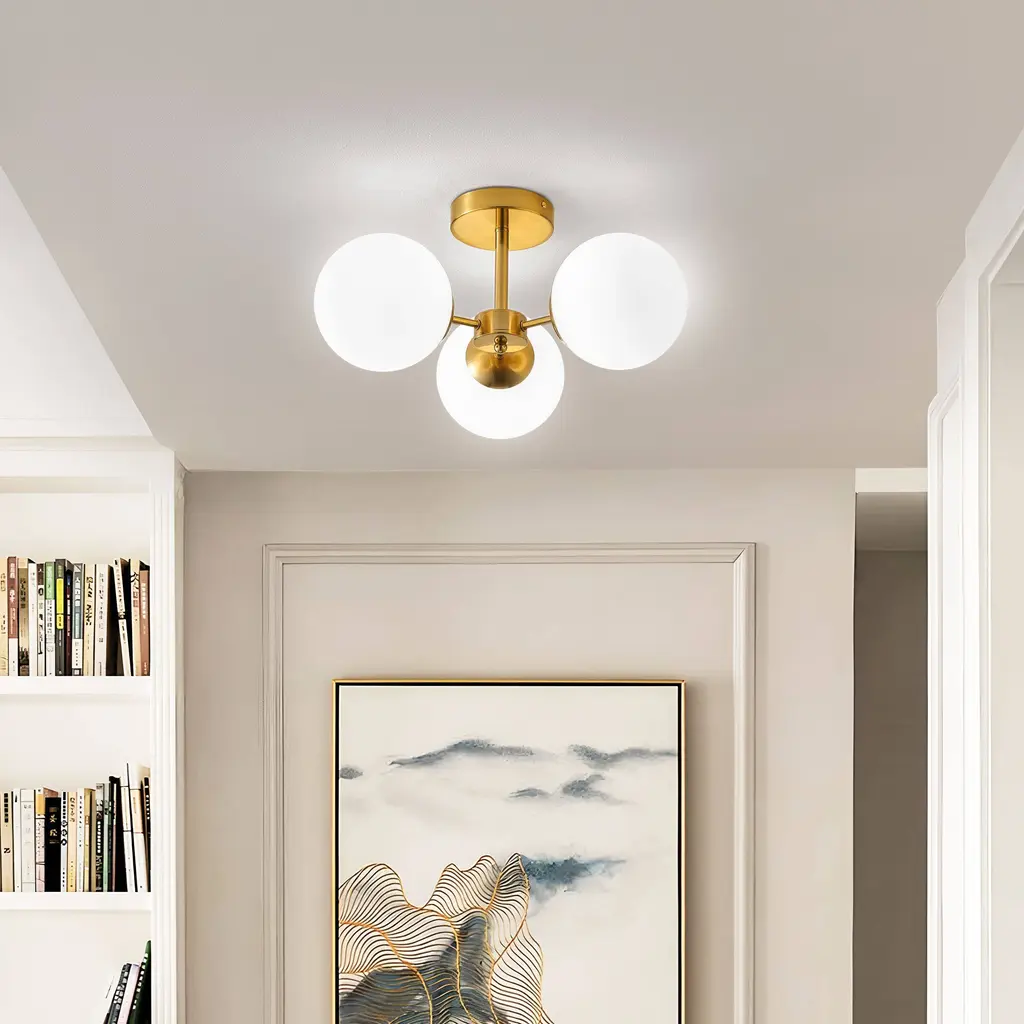 Starsky 3-Light Sputnik Modern White Bubble Glass Globe Semi Flush Mount - Frosted Bubble