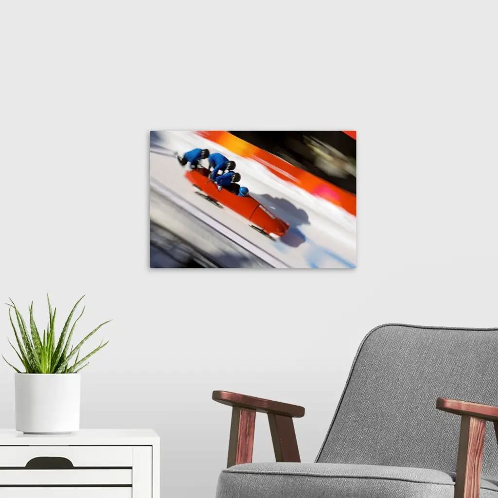 Start Of A 4 Man Bobsled Team In Action
