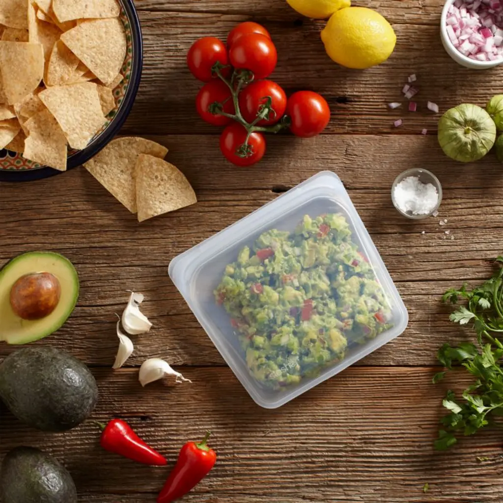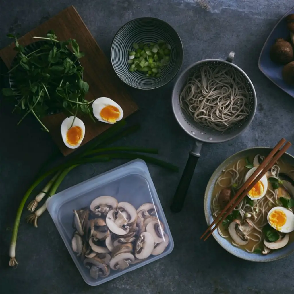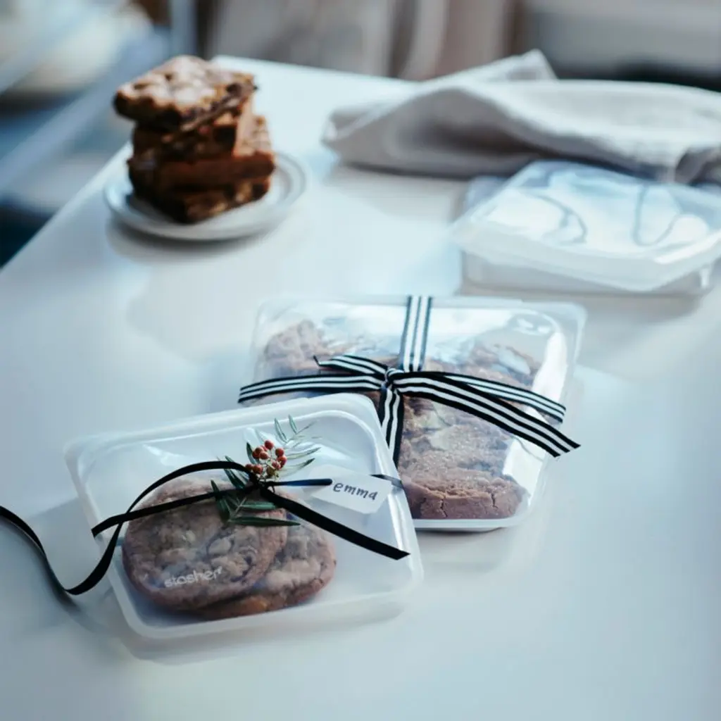 Stash everything from chopped vegetables to cosmetics to your phone in this resealable sack. Free of petroleum, the clear platinum silicone bag seals tightly, works in a sous vide, can be written upon and is touch-screen compatible. This sandwich size corrals chargers, freezes just-picked berries and totes sandwiches to the park. Stasher reusable silicone bags clean up easily in the dishwasher time after time and are safe to use in the freezer, microwave and oven.