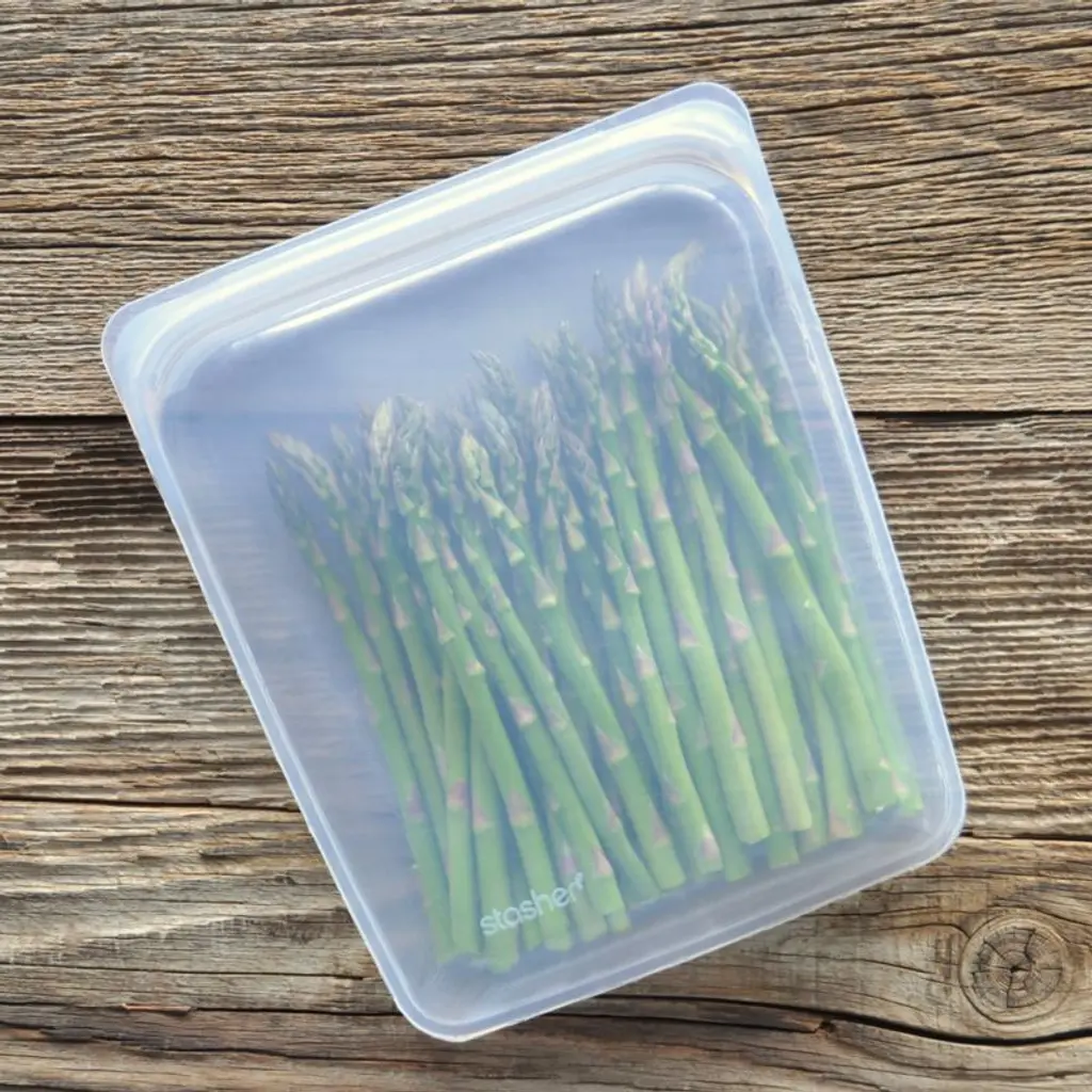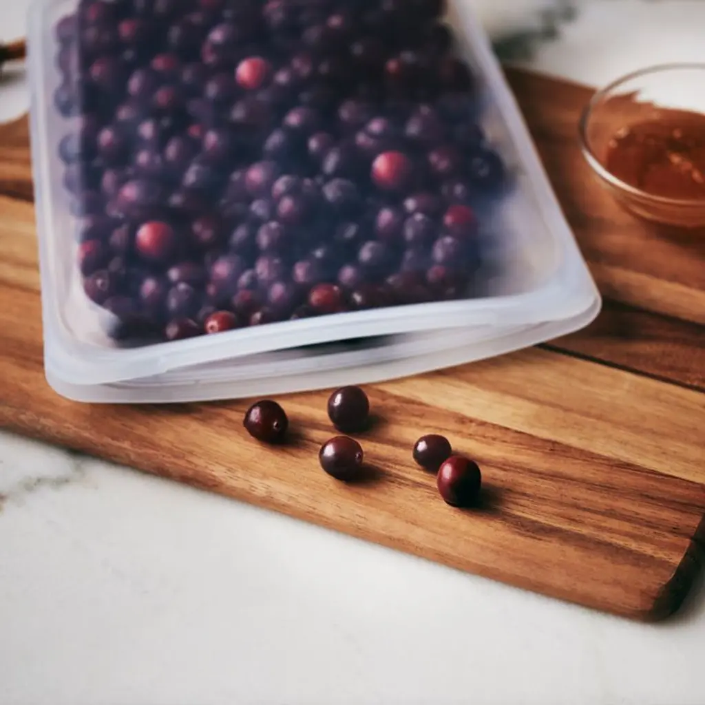 Replace plastic bags with reusable silicone, a more flexible and sustainable alternative to the ubiquitous disposable bags. Use this attractive bag to store, freeze and reheat homemade soup, baked goods, and batches of riceit even works as a sous vide bag. Microwave-safe and oven-safe to 400°F, this versatile half-gallon bag cleans up easily in the dishwasher.