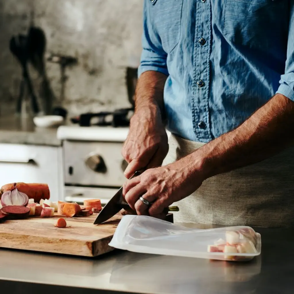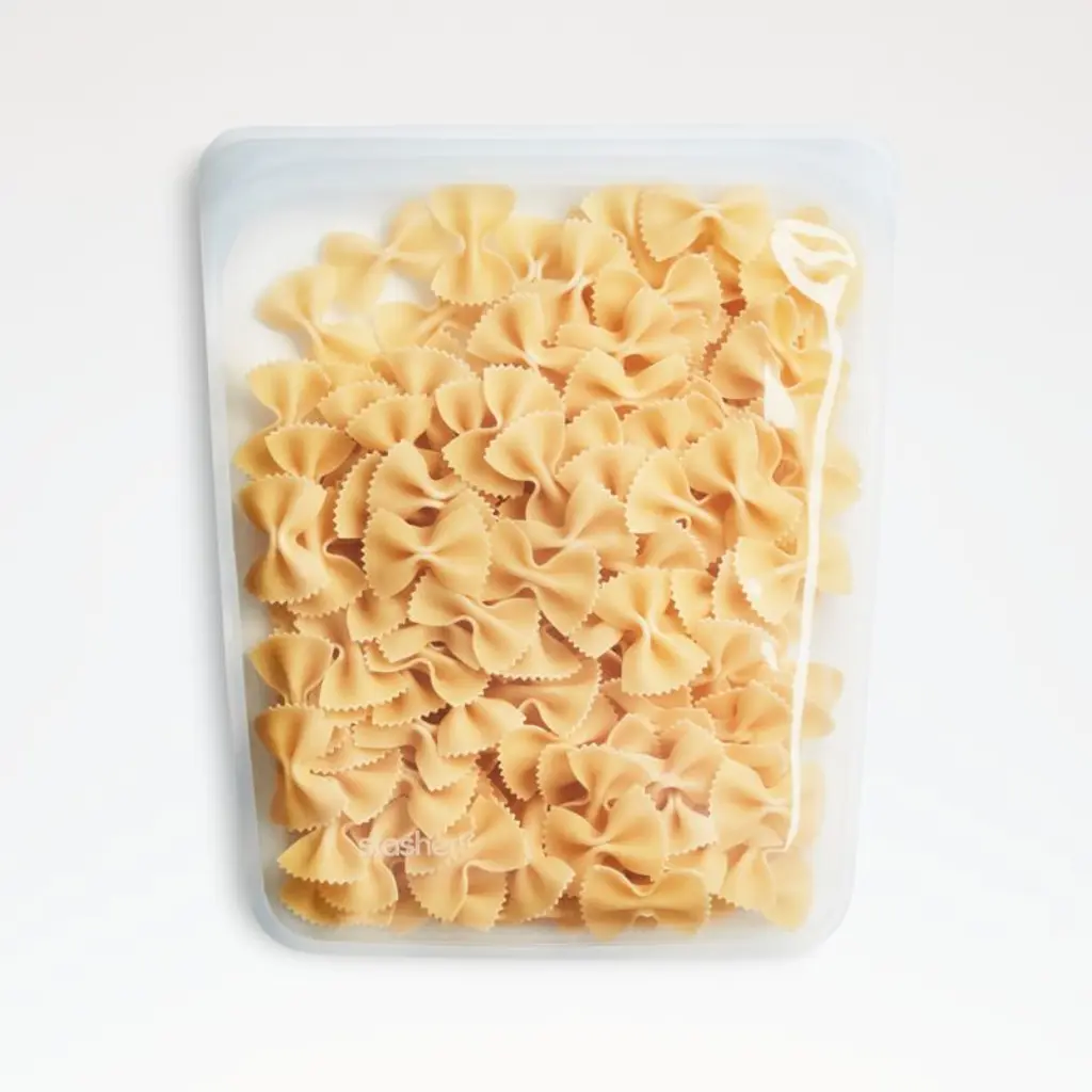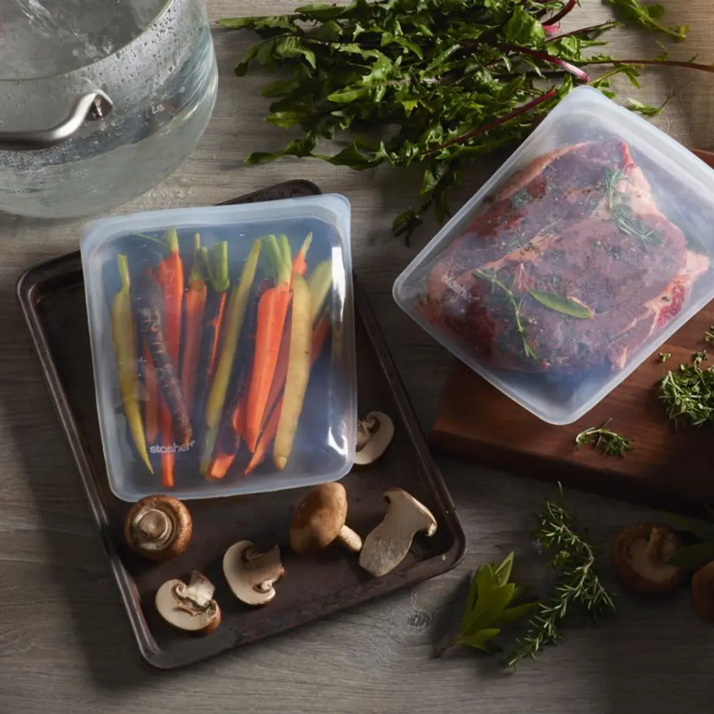 Replace plastic bags with reusable silicone, a more flexible and sustainable alternative to the ubiquitous disposable bags. Use this attractive bag to store, freeze and reheat homemade soup, baked goods, and batches of riceit even works as a sous vide bag. Microwave-safe and oven-safe to 400°F, this versatile half-gallon bag cleans up easily in the dishwasher.