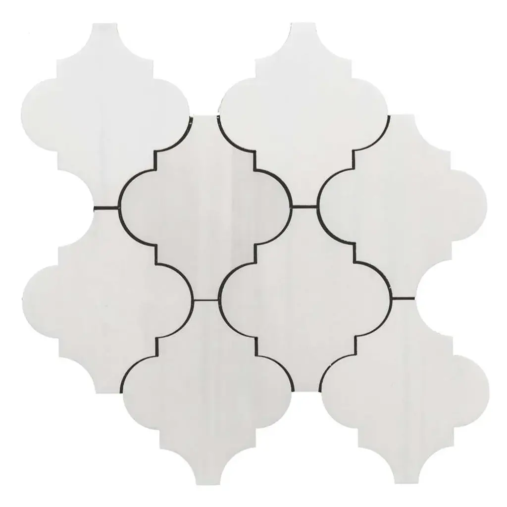 The Tile Life's Stately Arabesque line boasts the classic Moroccan tile style with a 21st-century update. These tiles' natural veins and smooth lines create a stunning design variation. High quality porcelain makes this tile heat resistant, chip resistant, water resistant, and scratch resistant. The collection comes in a beautiful polished gloss finish. Their easy installation and water resistance make our Stately Arabesque tiles perfect for feature walls, backsplashes, or shower walls. The Stately Arabesque design is available in three sophisticated color options: Calacatta, Dolomite Ivory, and Calacatta Gold, each offering a luxurious marble look in a durable porcelain finish. FEATURES:DIMENSIONS: