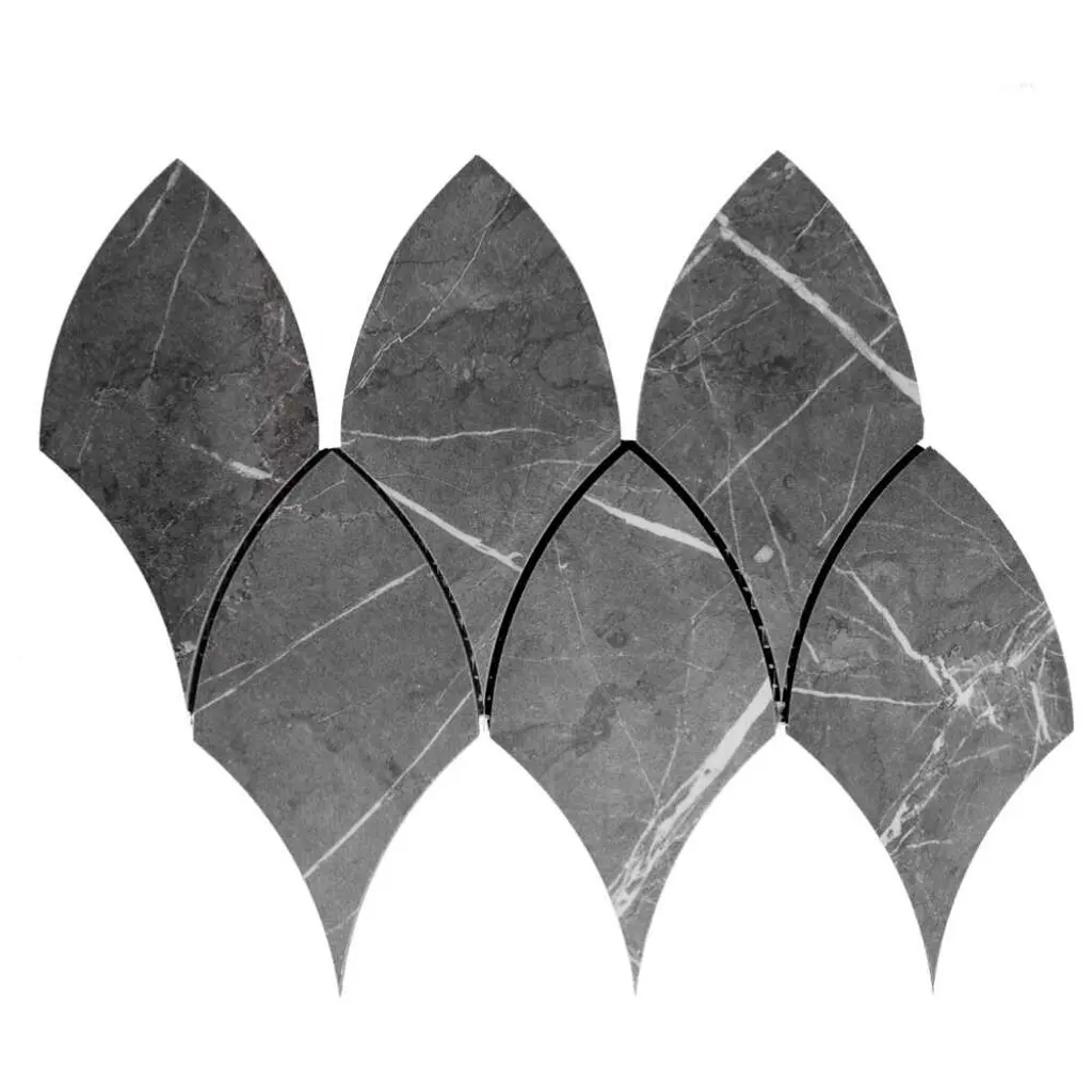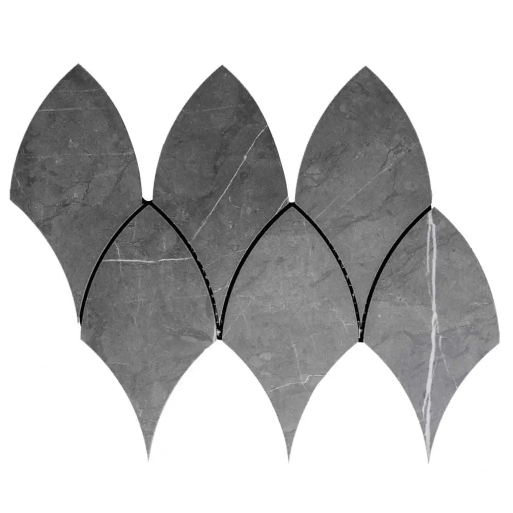 The Tile Life's Stately Duchess line is our newest elongated fish scale mosaic made from premium polished porcelain. This durable tile's unique shape elevates every room, adding subtle depth and movement. Origins Duchess' neutral grey and white color options offer versatility when choosing your room's accent colors. Its distinctive pattern makes it a fantastic choice for designers looking to add activity to their homes. Perfect for backsplashes, bathrooms, showers, kitchens, fireplace surrounds, and more, these tiles offer a unique, decorative pattern that enhances any room. Designed for both residential and commercial indoor installations, they are easy to install and offer long-lasting durability. Whether used on floors or walls, these porcelain tiles are the ideal choice for adding elegance and charm to your home or business. FEATURES:DIMENSIONS:
