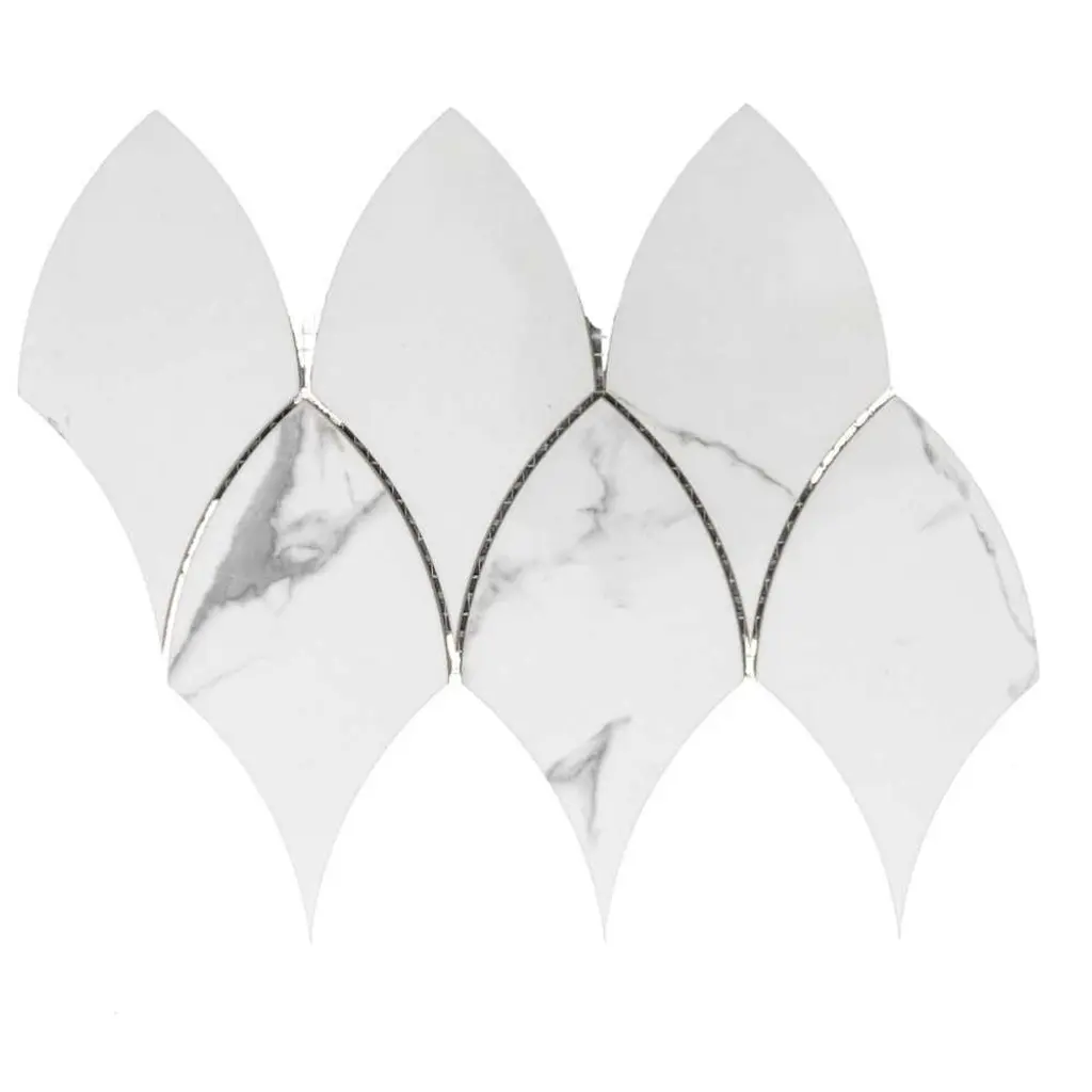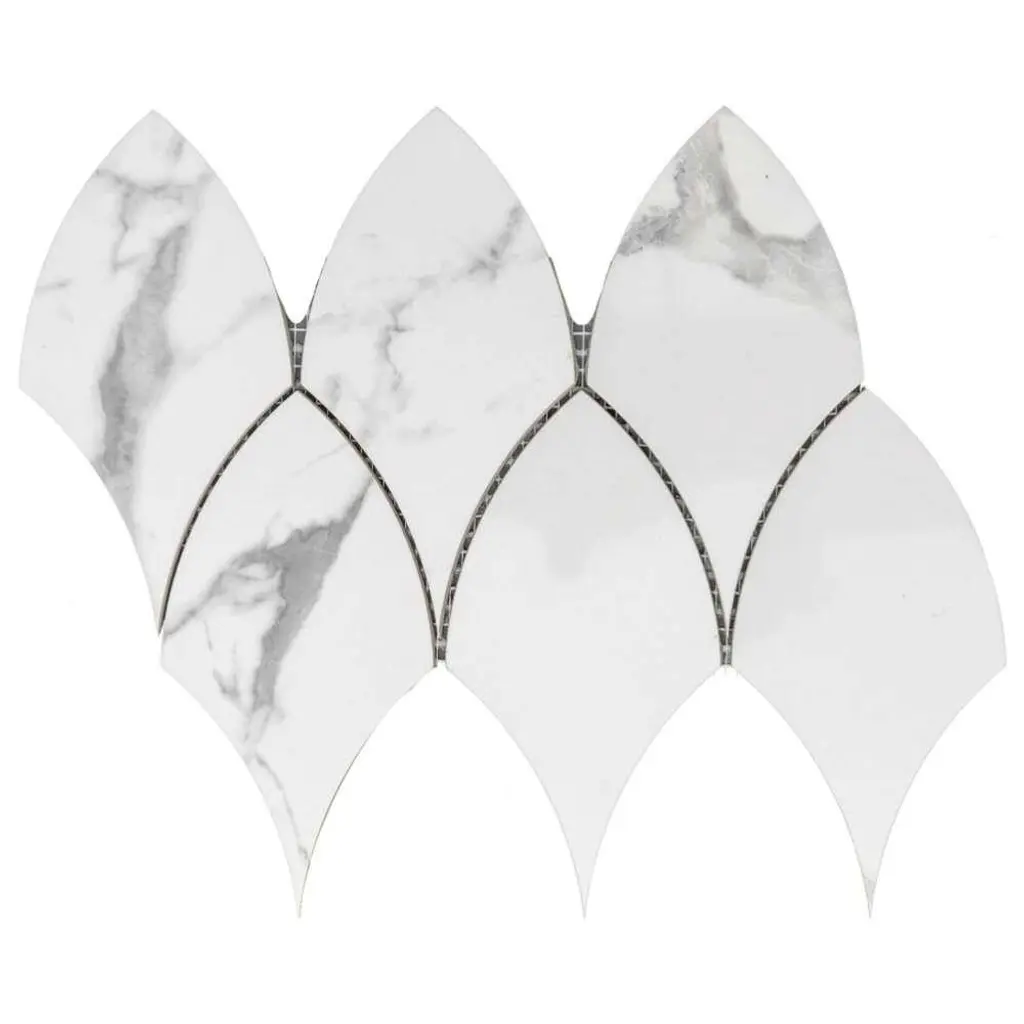 The Tile Life's Stately Duchess line is our newest elongated fish scale mosaic made from premium polished porcelain. This durable tile's unique shape elevates every room, adding subtle depth and movement. Origins Duchess' neutral grey and white color options offer versatility when choosing your room's accent colors. The Stately Duchess collection's distinctive pattern makes it a fantastic choice for designers looking to add activity to their homes. This collection is an excellent fit for bathroom floors, bathroom walls, shower walls, kitchen floors, fireplaces, and backsplashes. FEATURES:DIMENSIONS: