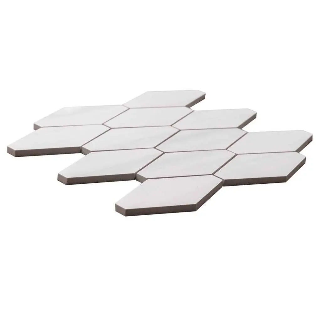 Stately Elongated Hex 12" X 12" Dolomite Porcelain Floor And Backsplash Wall Tile - White - 1 Sheet (0.95 Sq. Ft.)