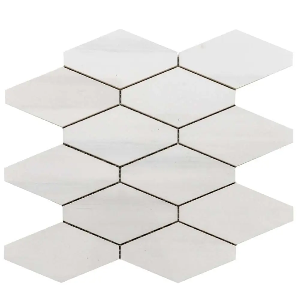 The Tile Life Stately Elongated Hex 12 inches x 12 inches Porcelain Floor and Wall Tile is a sophisticated take on the classic hexagon tile. Artfully crafted from quality porcelain, this tile's elongated pattern plays with geometry and dimension in any space you put it in. Stately Elongated Hex is a beautiful example of everything a marble look tile should be. Impress your guests by using this tile as a statement piece or a focal point for your bathroom, kitchen, living room, or entryway. The 12" x 12" polished porcelain marble-look hexagon mosaic tile features an elongated hexagonal pattern. FEATURES: DIMENSIONS: