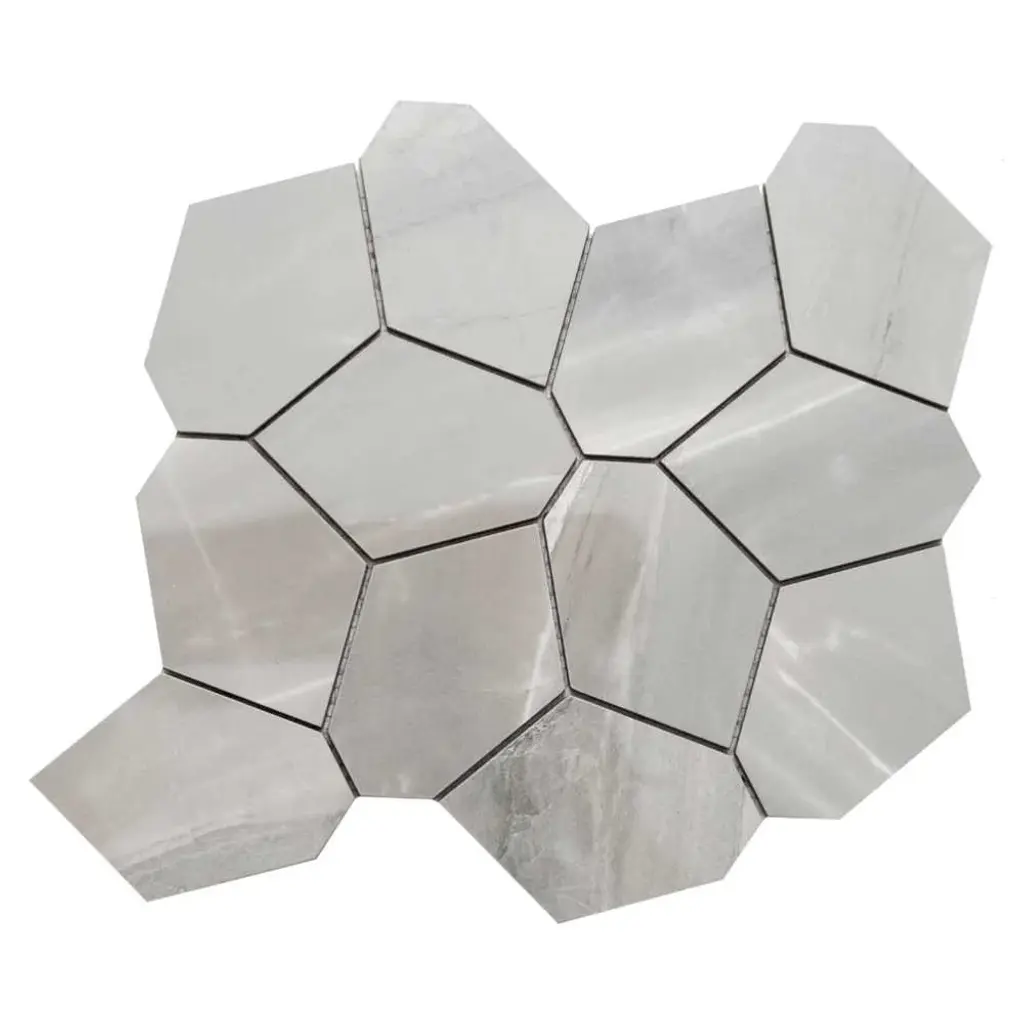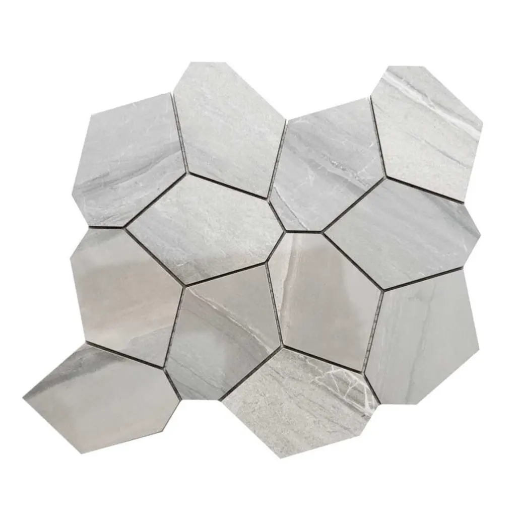 Classic old-world style meets a spa oasis. The Tile Life's new Stately Oasis is the perfect mosaic for any relaxation-inspired room. With each unique shape, these tiles flow together seamlessly, creating a distinctive look in each space in which they are used. Our Stately Oasis' smooth lines bring harmony to your design and put your room décor together with minimal effort. Use this tile for your bathroom floor, shower wall, fireplace surround, or as a kitchen backsplash to balance out your room's boldness. FEATURES: DIMENSIONS: