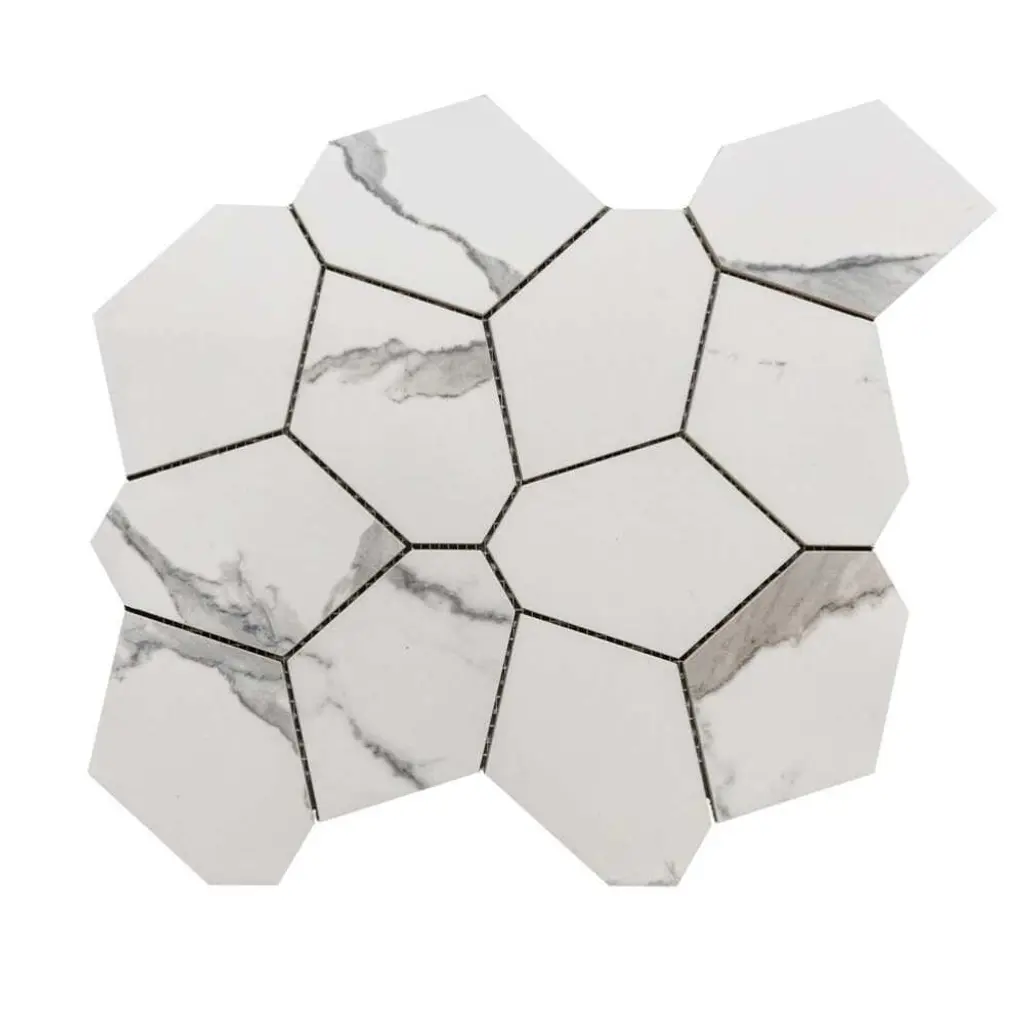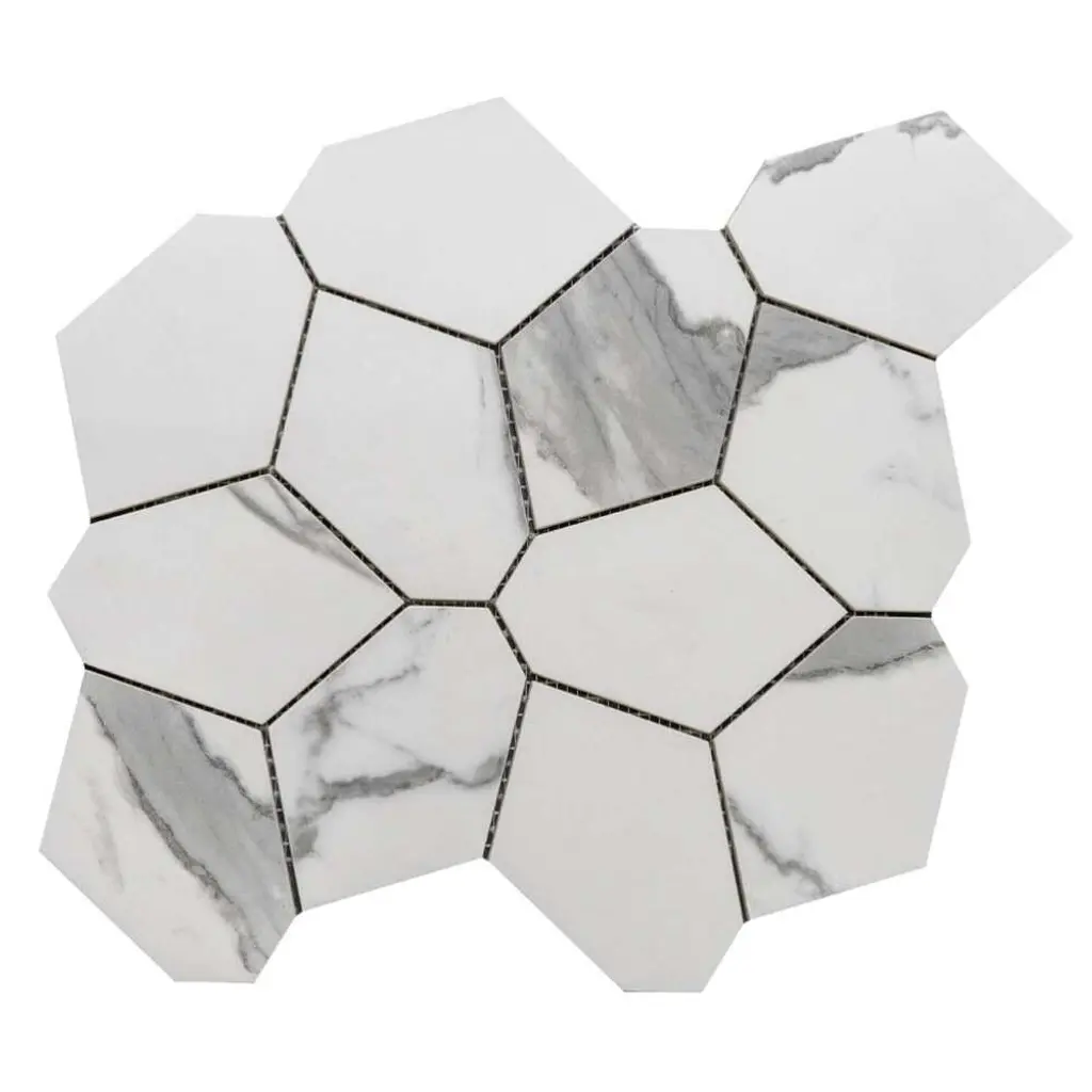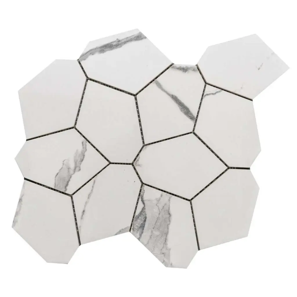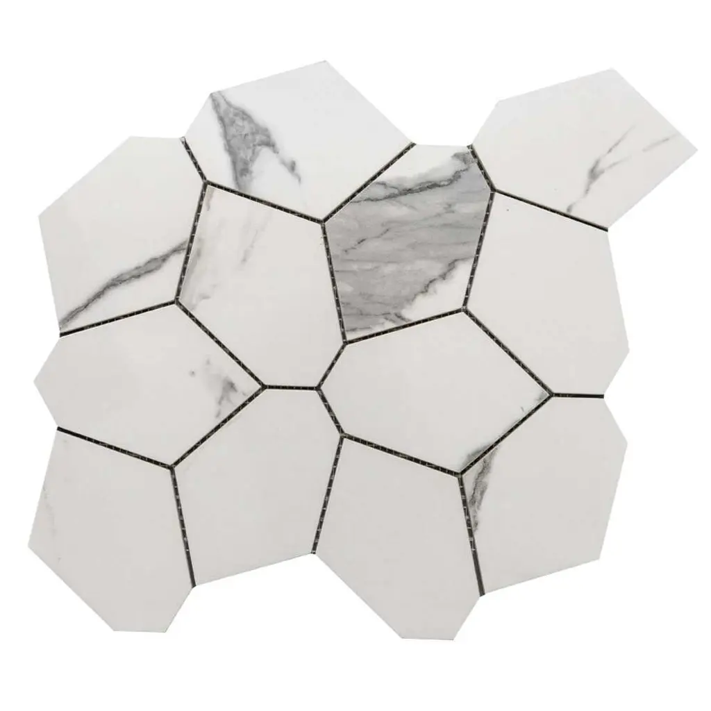 Classic old-world style meets a spa oasis. The Tile Life's new Stately Oasis is the perfect mosaic for any relaxation-inspired room. With each unique shape, these tiles flow together seamlessly, creating a distinctive look in each space in which they are used. Our Stately Oasis' smooth lines bring harmony to your design and put your room décor together with minimal effort. Use this tile for your bathroom floor, shower wall, fireplace surround, or as a kitchen backsplash to balance out your room's boldness.FEATURES:DIMENSIONS: