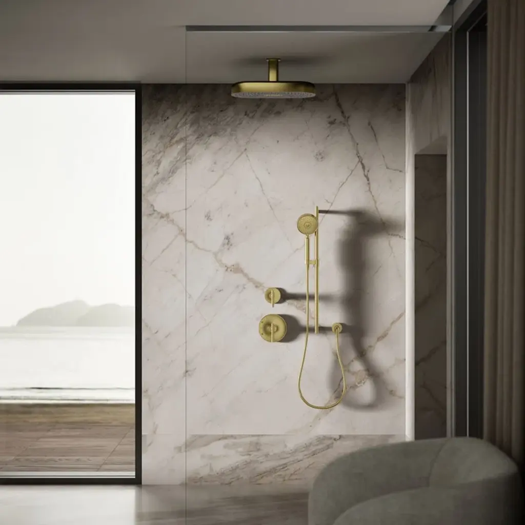 Relax in a shower that simulates a warm summer rain and targets sore shoulders with swirling kinetic streams - two distinct experiences, each available separately within one rainhead. Choose between full-coverage, mixing air and water to produce large water droplets for a powerful, consistent overhead shower spray experience, or more focused deep massage kneading streams, angled to relieve sore muscles. The innovative two-function rain-head also boasts a contemporary, minimalist design that coordinates with many Kohler faucets and accessories.