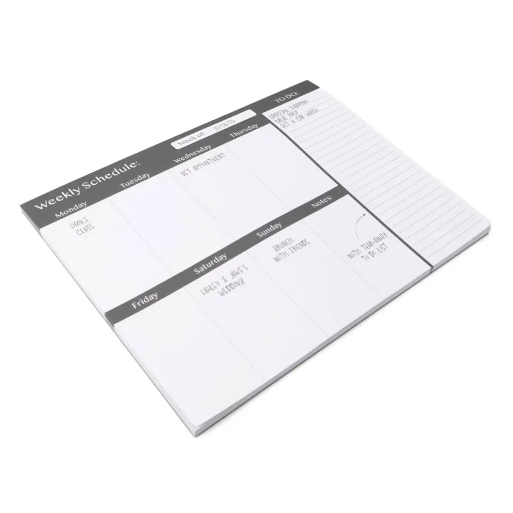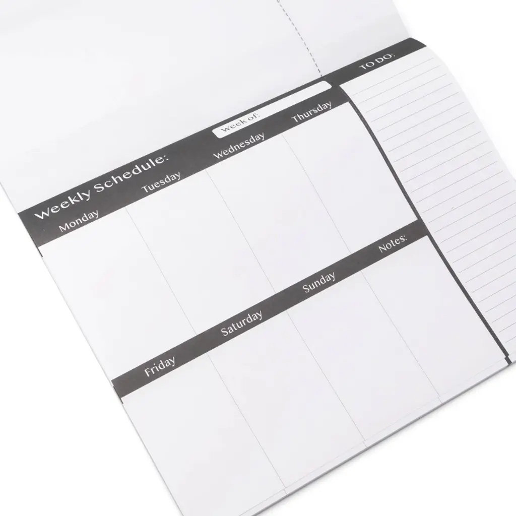 Stay organized with the Stationery Pads Weekly Schedule from Bullseye's Playground. This undated planner is perfect for jotting down your weekly plans and to-dos. Crafted from quality paper, it features a convenient 7 x 9-inch size, making it easy to carry around. The glue binding ensures pages stay intact, while the clean white design offers a blank canvas for your creativity. Ideal for home or office use.