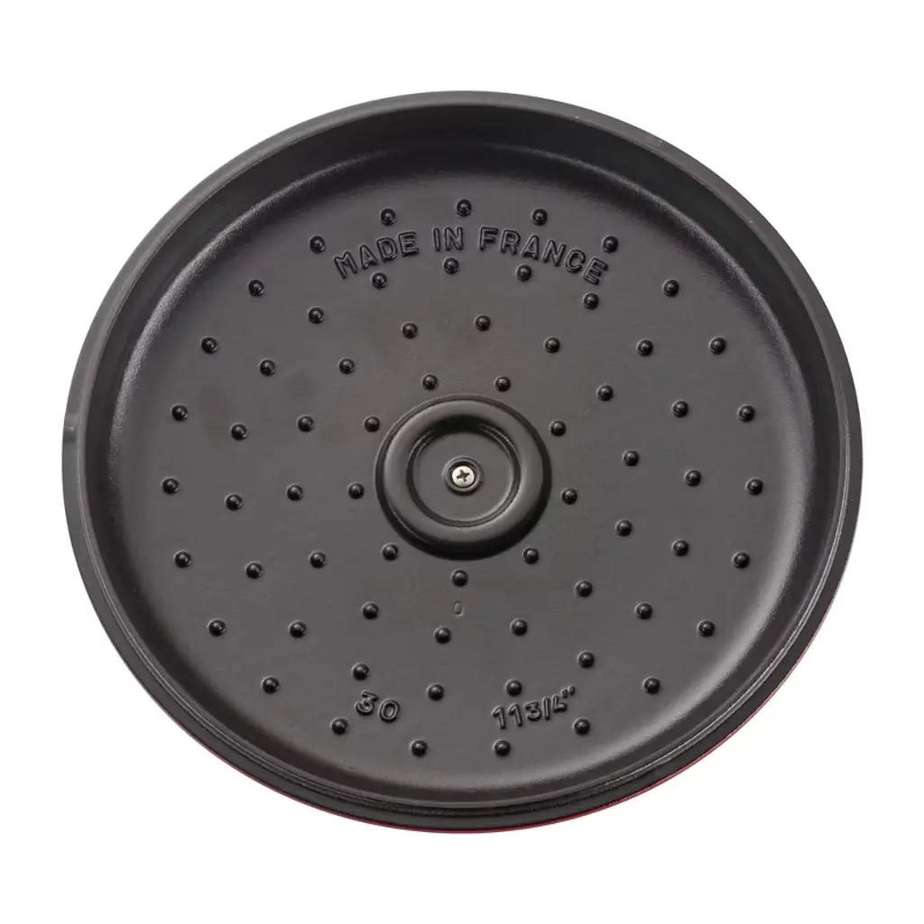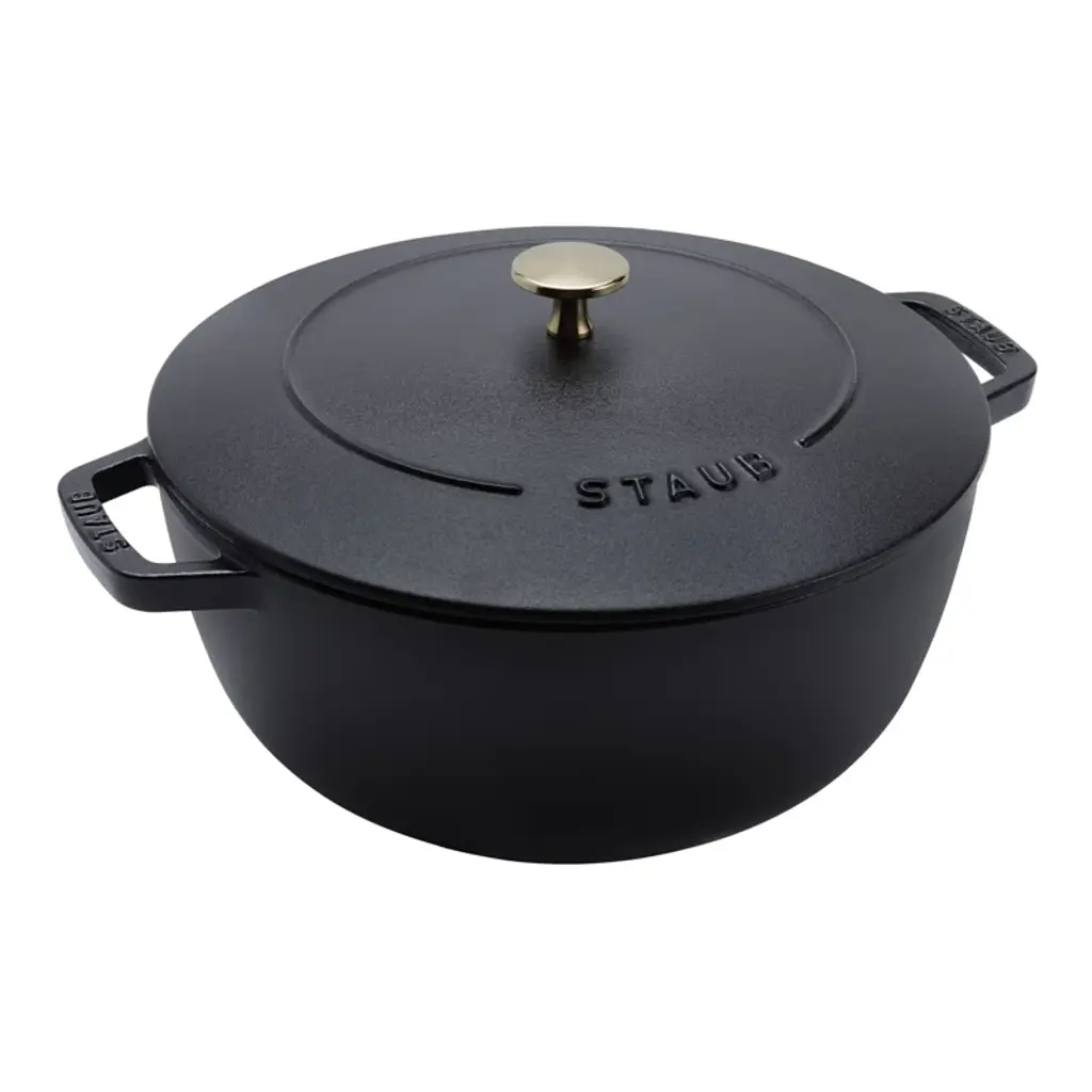 The Staub Cast Iron 3.5-qt Braiser is the perfect pot for one-dish suppers, braised lamb shanks, and breakfast hash. It will quickly become your go-to cooking vessel, perfect for sauteing, frying, braising, and roasting. Thanks to its vivid Majolica enameling - a three-step technique that imbues the color with brilliance and depth - this iconic piece beautifully transitions from oven to table.The domed lid makes it easy to cook large cuts of meat - its heavy weight helps lock in moisture for flavor-enhanced food. The braiser's unique design features vintage look handles that encourage easy maneuvering while wearing oven mitts.