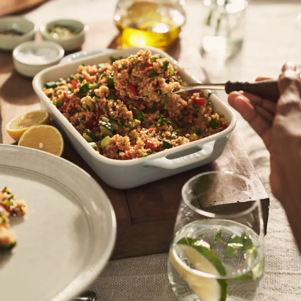 Inspired by the delicious pastels of petit fours, macarons and other French pastries, these light blue baking dishes present brunch, dinner or dessert with the charm of a Parisian bakery. The stoneware diffuses heat to cook gently and thoroughly, while the creamy porcelain enamel interiors prevent moisture absorption during baking for consistent results. Extremely resistant to impact and thermal shock, the baking dishes go straight from freezer to oven to table, with loop handles providing a sturdy grip.Rooted in French culinary heritage, Staub cookware is beloved by professional and home chefs for its exquisite craftsmanship, exceptional performance and timeless beauty.